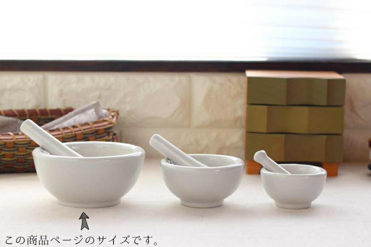 乳鉢セットはS(40ml)・M(110ml)・L(250ml)サイズがあります。用途に合せてお選びください。