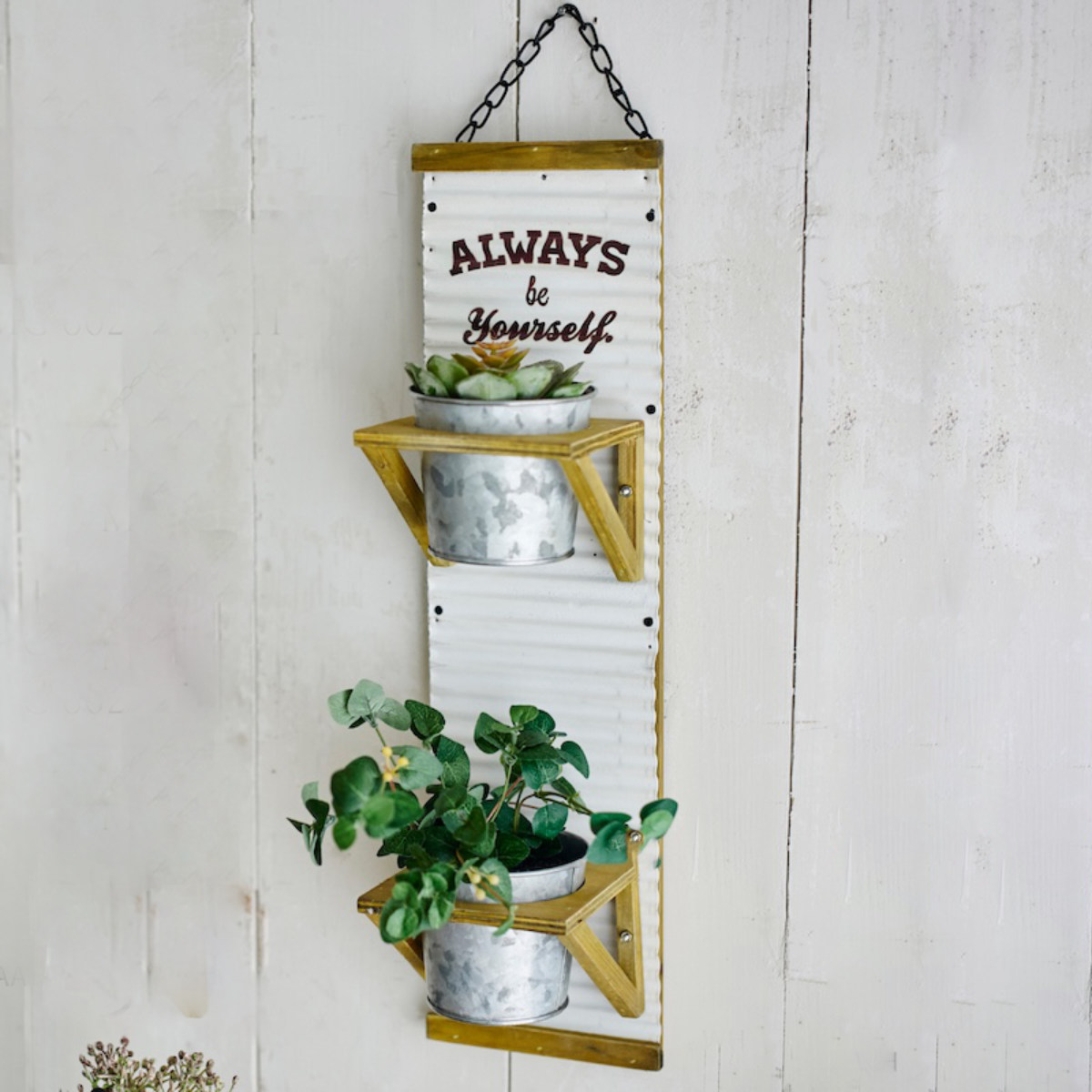無骨でクラフト感が魅力のハンギングポットです。トタンのクールな質感とウッドのナチュラルで優しい風合いが、お庭やお部屋を個性的な空間へ演出します。