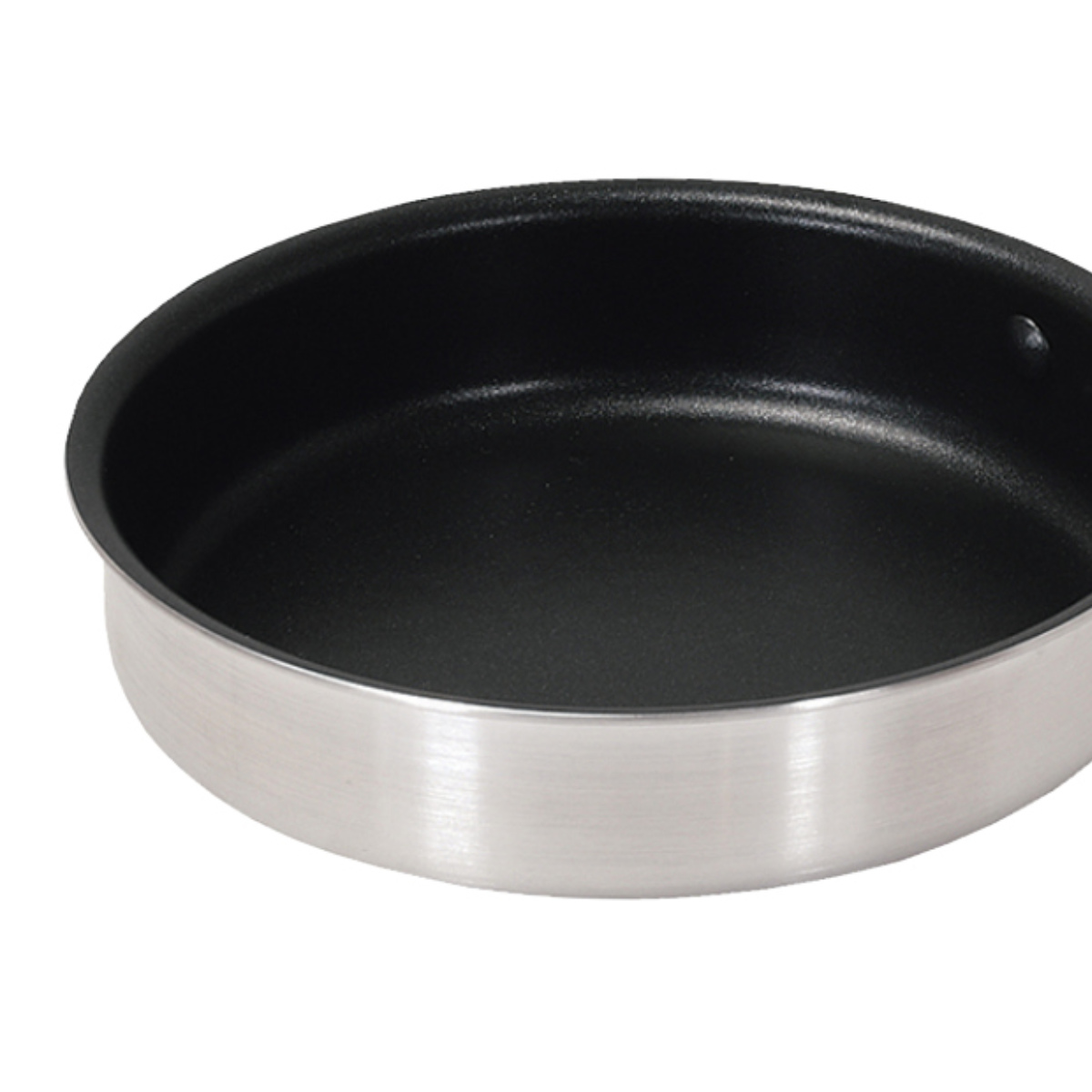 無駄のないスピード調理がかなう、アルミ+ステンレスの2層鋼フライパンです。熱伝導の良いアルミと保温力の高いステンレスを合わせているので、すばやく加熱でき、かつ全体にムラなく熱を伝えます。従来品と比較しても加熱の早さ、沸騰力が違います。