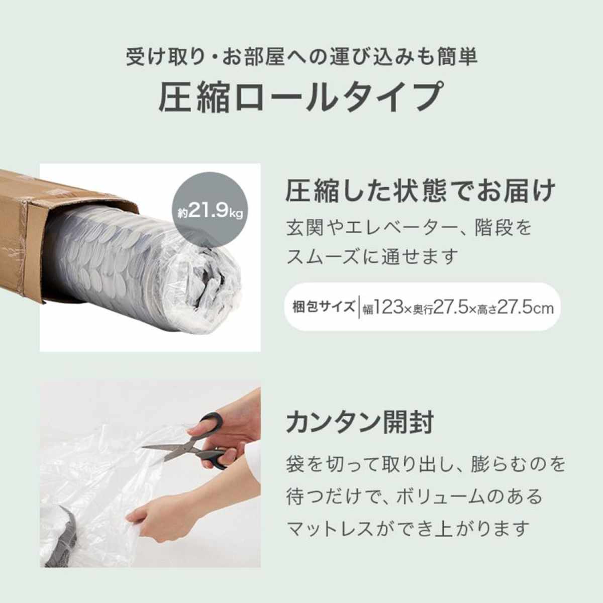 圧縮ロール梱包タイプで搬入設置がラクラク