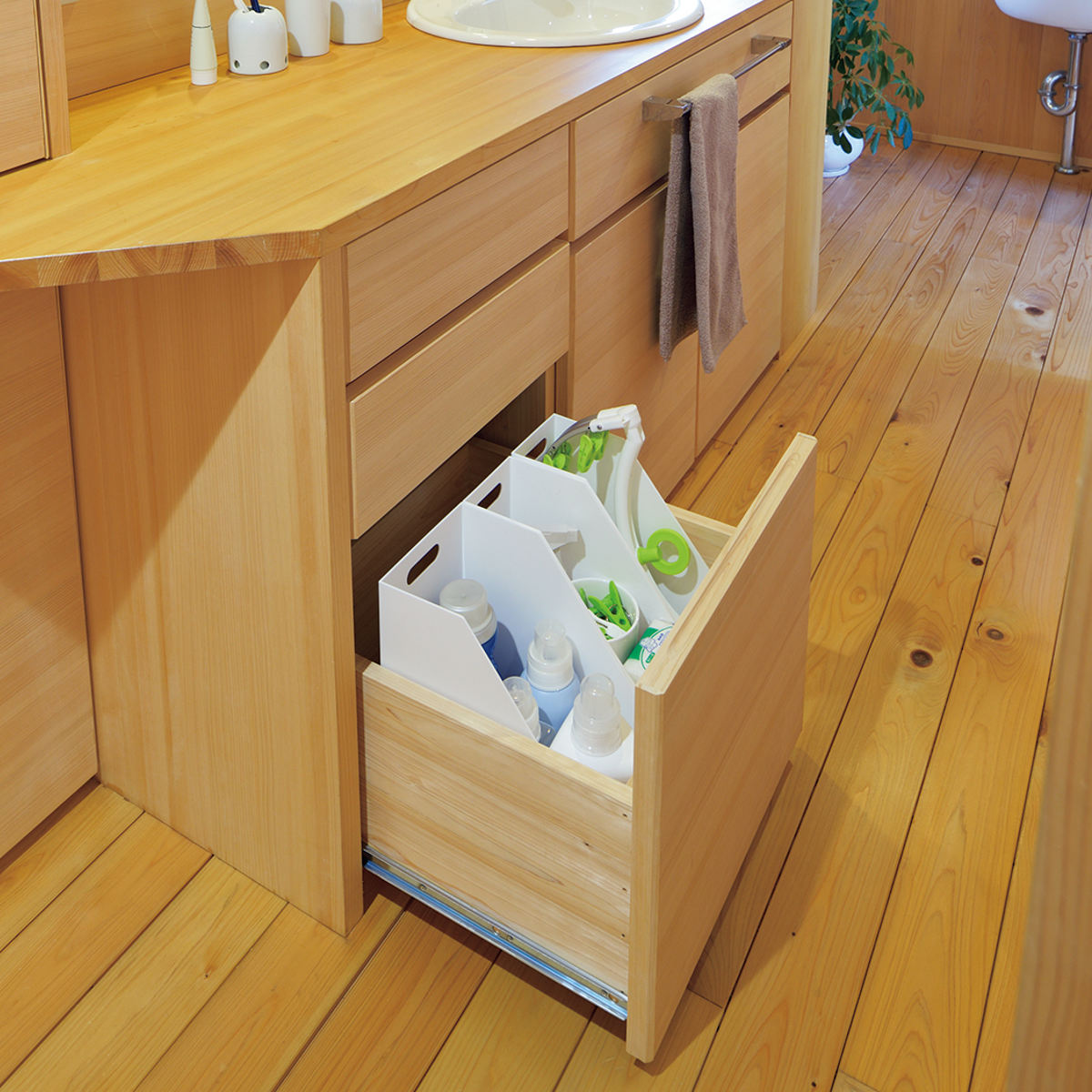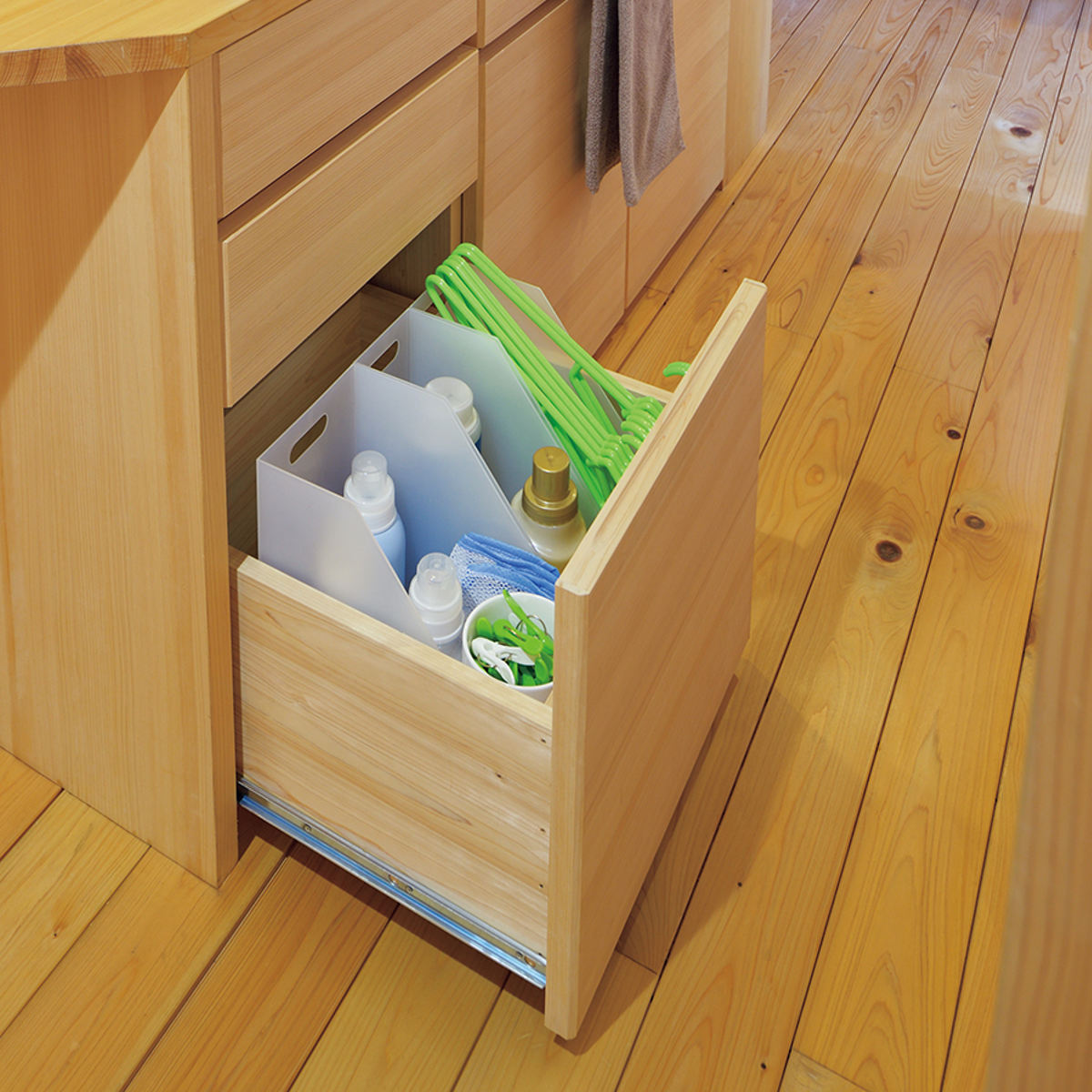 散らかりがちな日用品も、立てて収納することで、ひと目で見つかりサッと取り出せます。限られたスペースを効率よく使え、毎日の収納がもっと快適になります。
