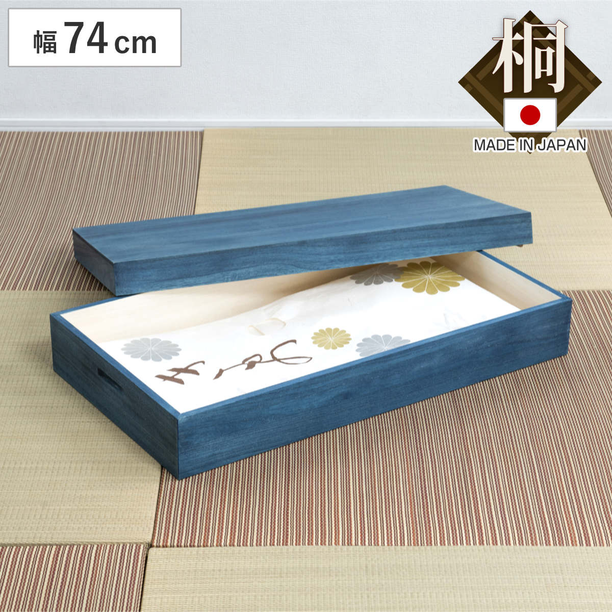 - 本体:天然木桐材(藍塗装) 底板:天然木桐化粧板