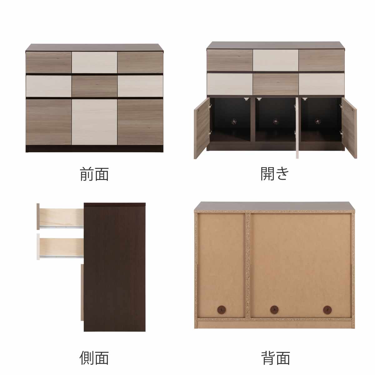 | 材質 | 前板:強化プリント紙化粧繊維板 その他:プリント紙化粧繊維板 |