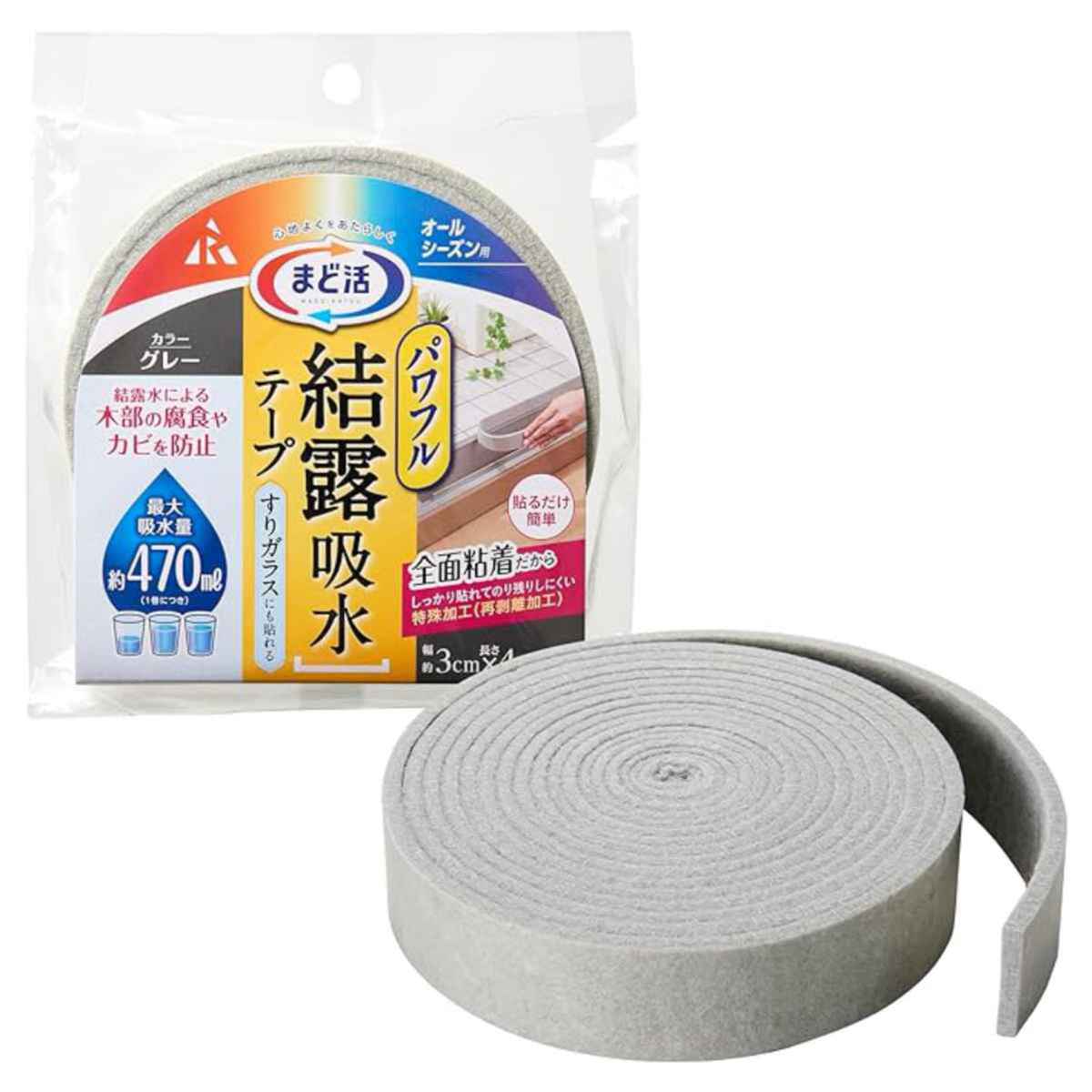 窓に貼るだけで冷気をカットする結露吸水テープ 3×400(cm)