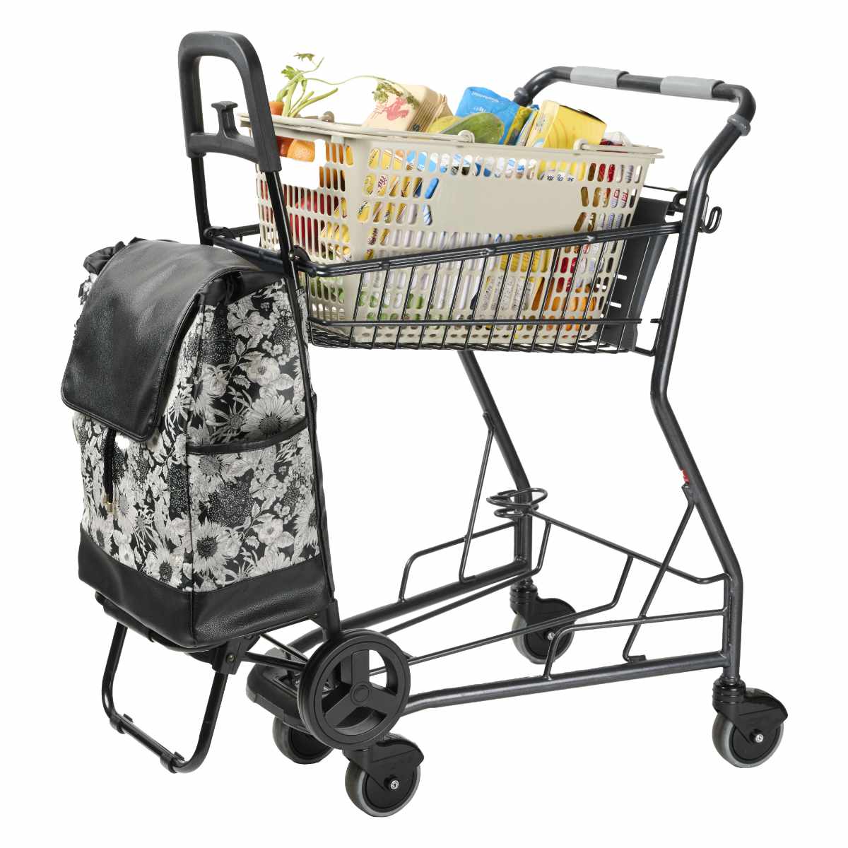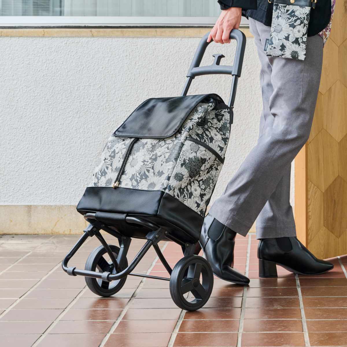 バッグをかけるのに便利なフックやサイドポケットなど嬉しい機能が揃ったショッピングカートです。日々のお買い物、ランドリー、旅行の際など様々なシーンで活躍します。