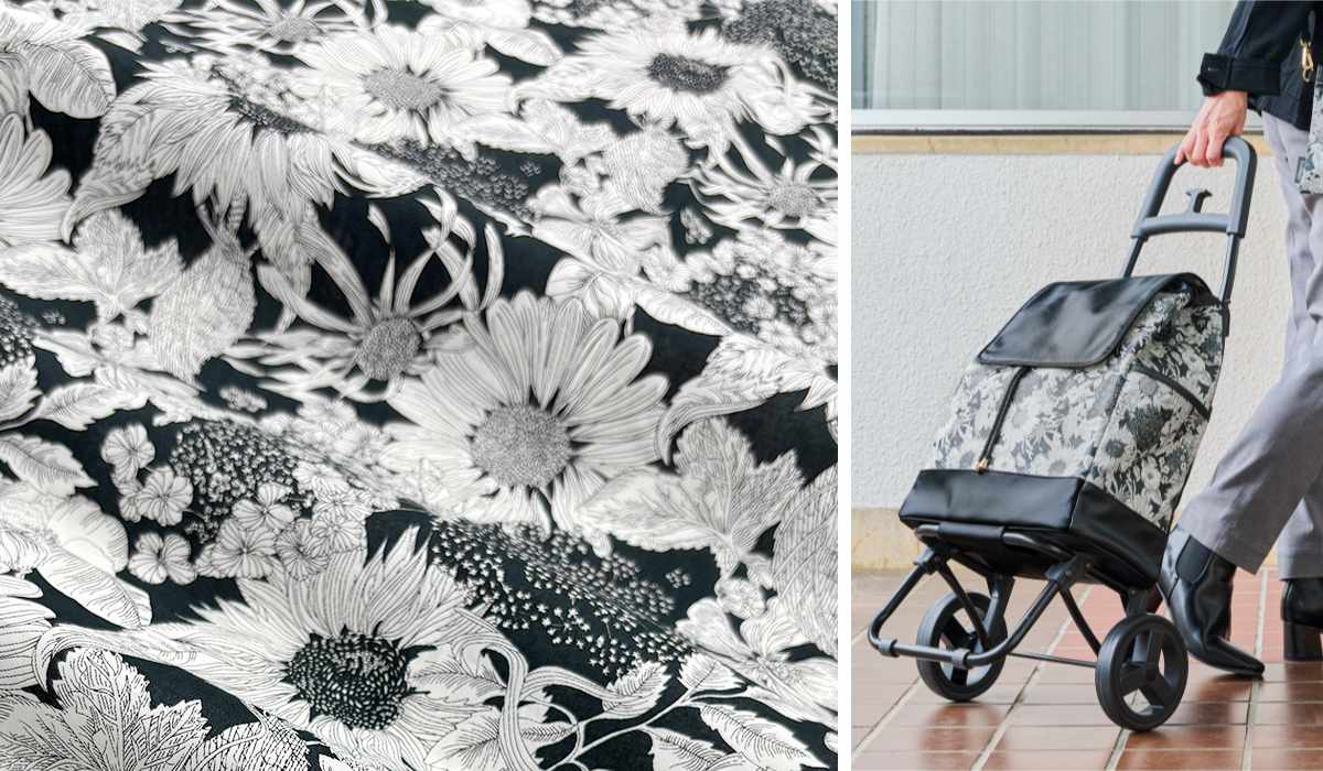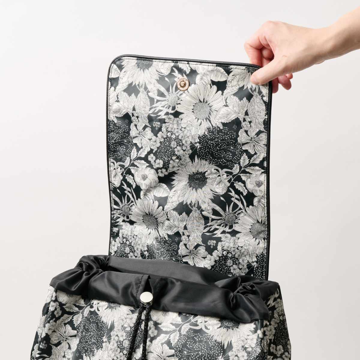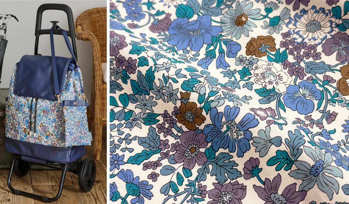 | 材質 | フレーム:スチール バッグ表地(柄部分):リバティ・ファブリックス・タナローン綿100%(EVA加工) 無地部分:ポリウレタン バッグ裏地:ポリエステル バッグ芯材:アルミ蒸着フィルム |