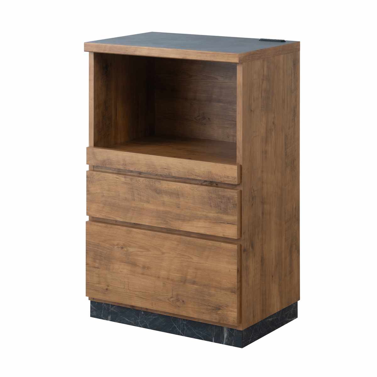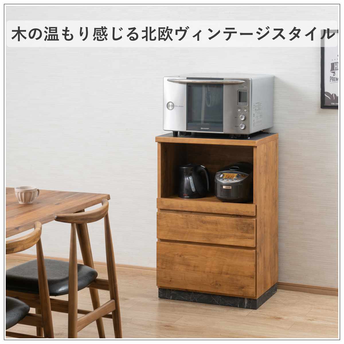 マットな質感と深みのあるライトブラウンの木目が際立つ、北欧ヴィンテージスタイル。木肌の温もりを感じられるナチュラルな風合いが、こなれた雰囲気を演出します。ブラックの大理石調の台輪が、本体を際立たせ、全体に高級感をプラスしています。