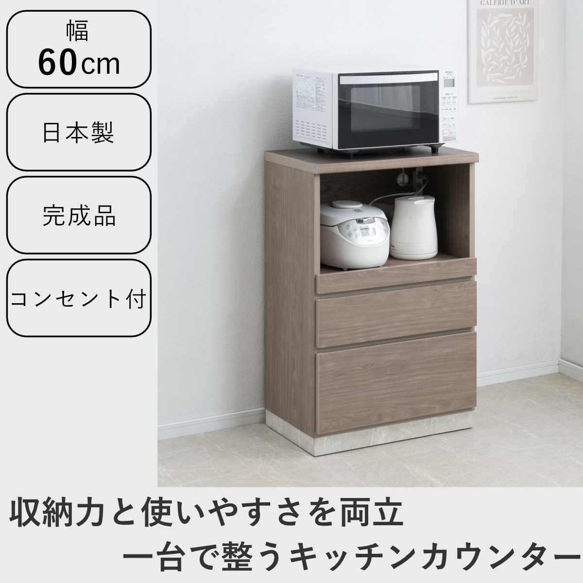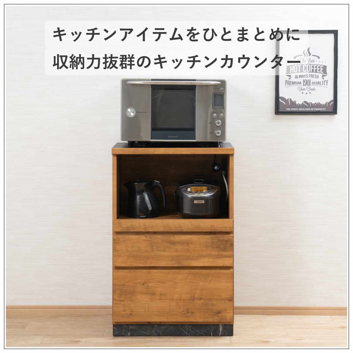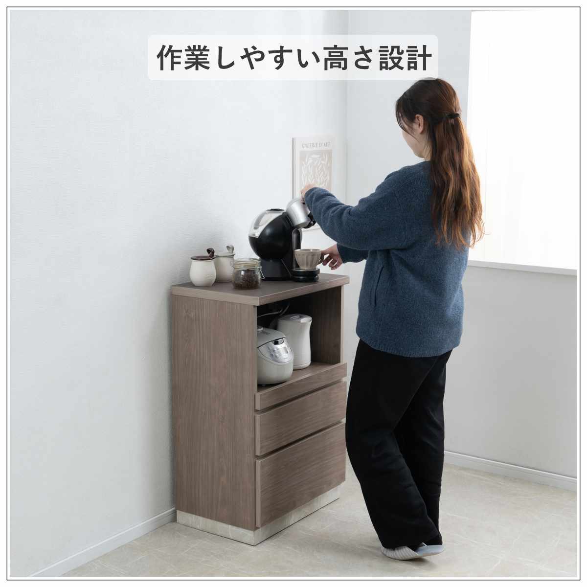 コンパクトサイズながら、たっぷり収納できるキッチンカウンターです。レンジや炊飯器などの家電から、食器、小物類まで、ひとまとめにスッキリ収納可能。キッチン周りを整えて、毎日の家事をスムーズにサポートします。