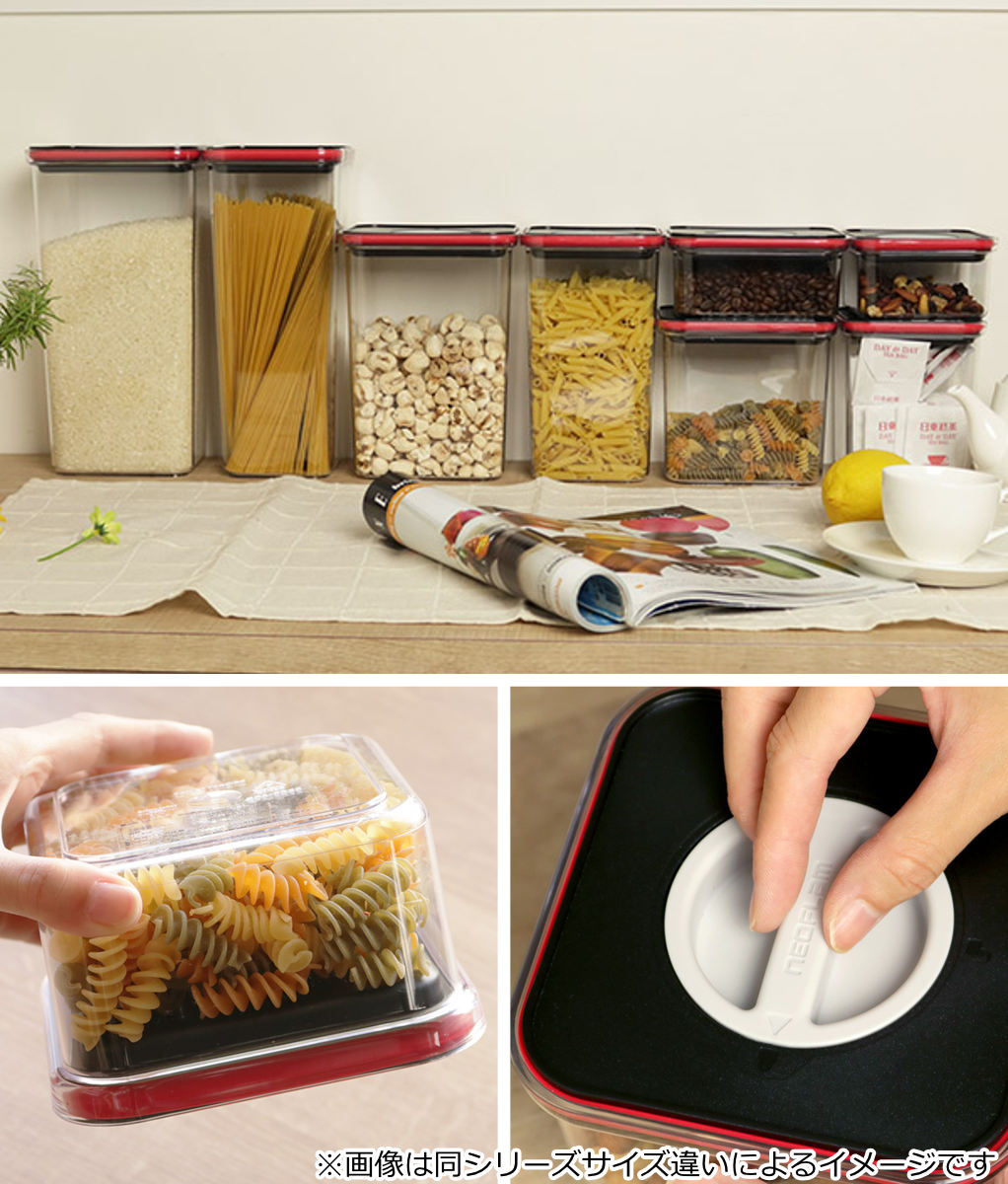 フタ上部のつまみを回すだけでしっかりロックでき、高い気密性が保てる機能的な保存容器です。乾燥や湿気から中身をしっかり守ってくれます。軽い力で誰でも簡単に開閉でき、うっかり倒してしまっても中身が飛び出すことなく安心です。