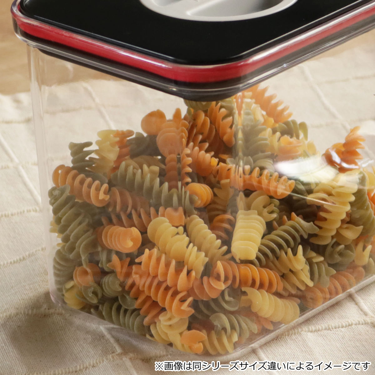 マカロニなどショートパスタなどの保存にちょうどよいサイズ感です。食品の保存容器として使うだけではなく、小物入れとしてもお使いいただけます。
