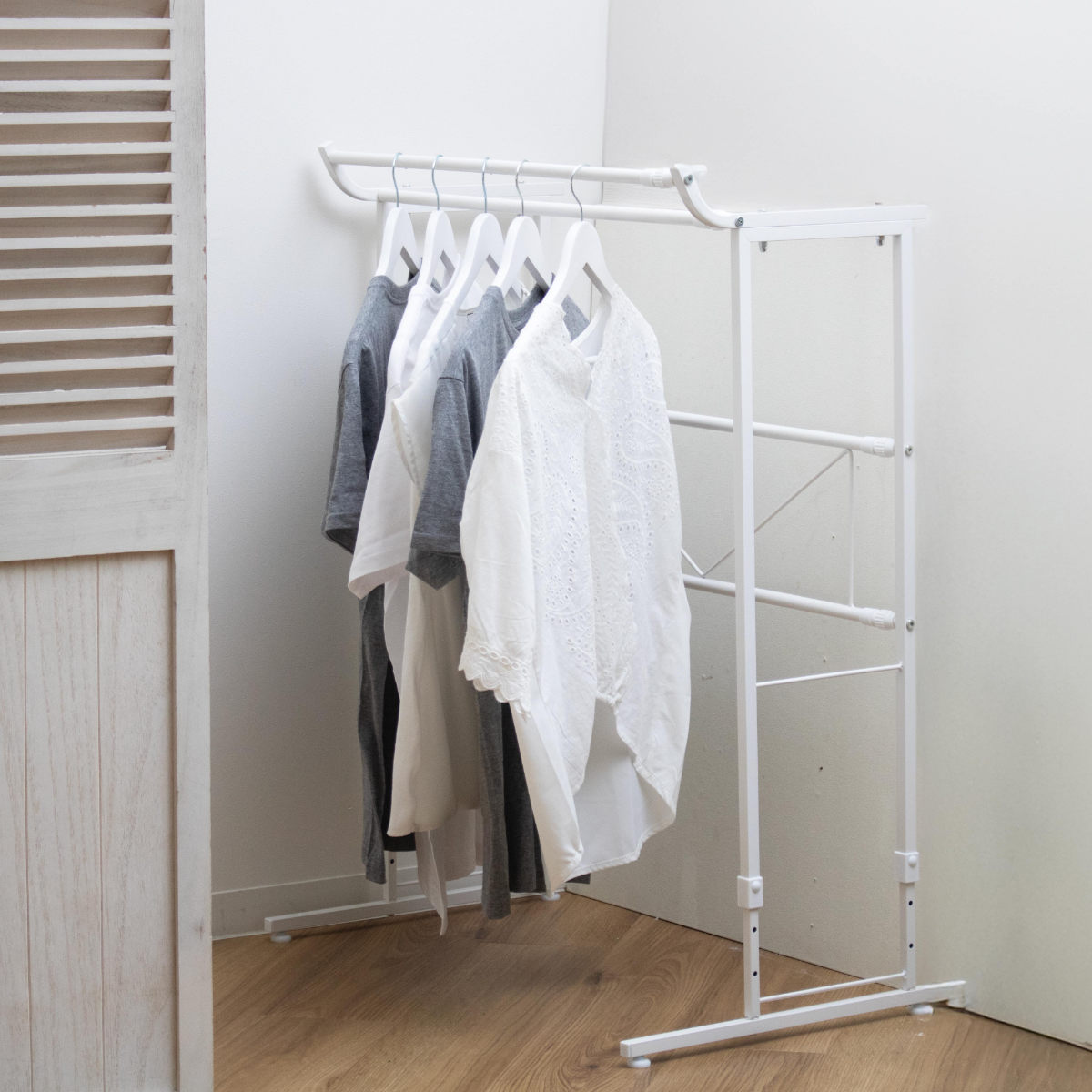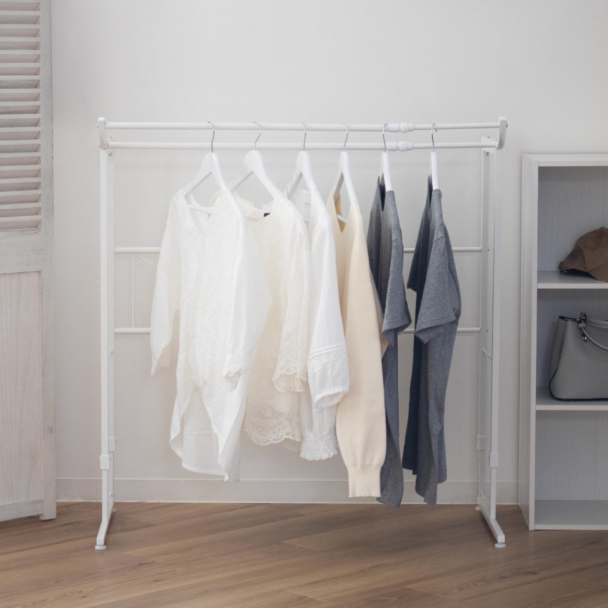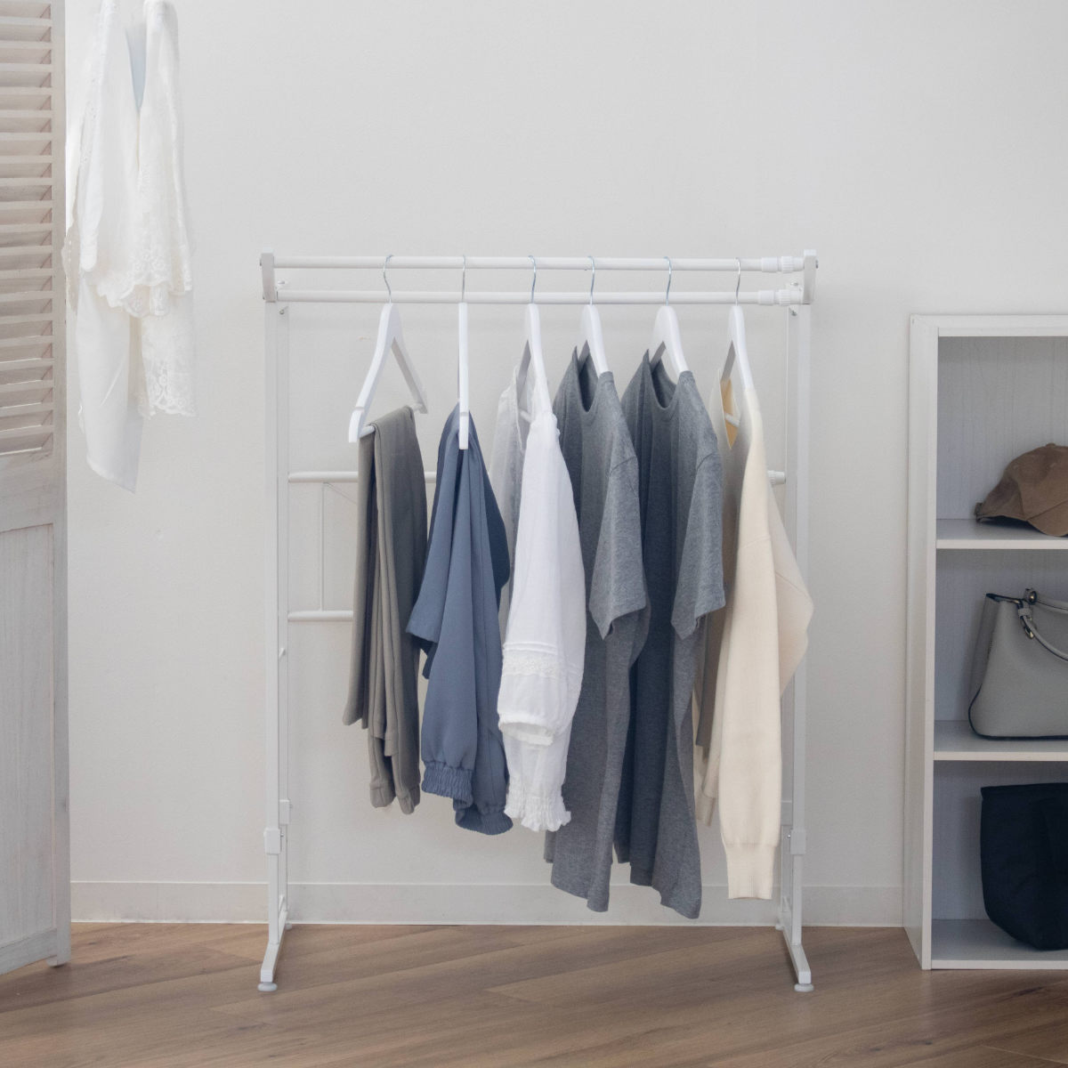 段違いの2段パイプでたっぷり掛けられるハンガーラック