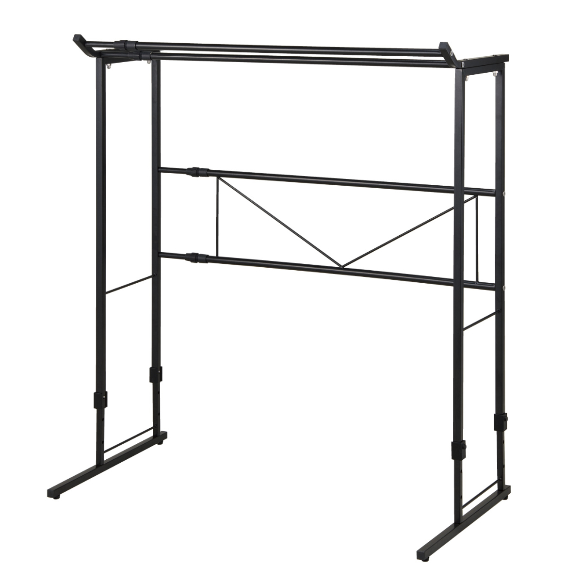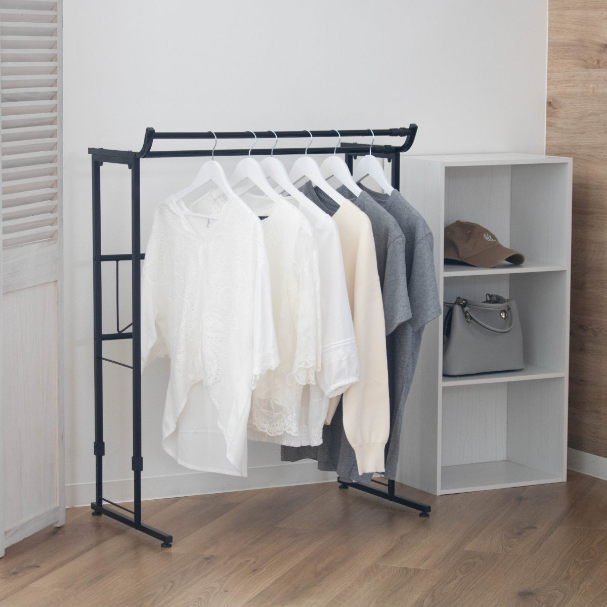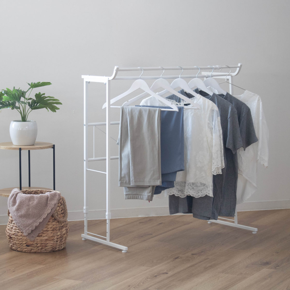 段違いの2段パイプでたっぷり掛けられるハンガーラック