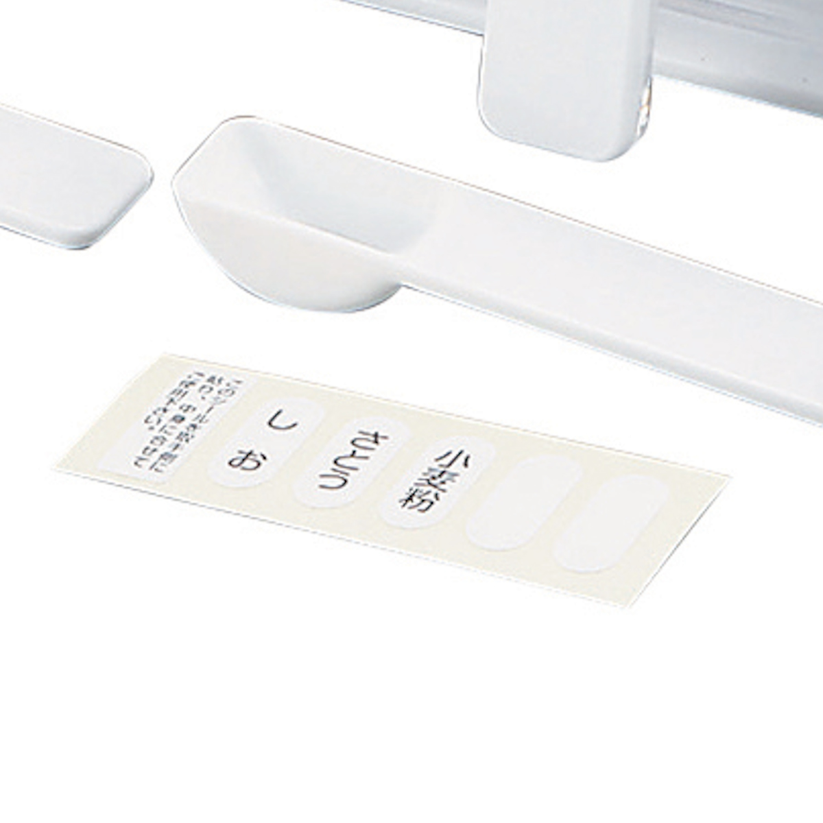 中身を分かり易く表示できる分類用シールが付属しています。ストッカーの取っ手部分に貼り付けておくと、一目で分かるので重宝します。