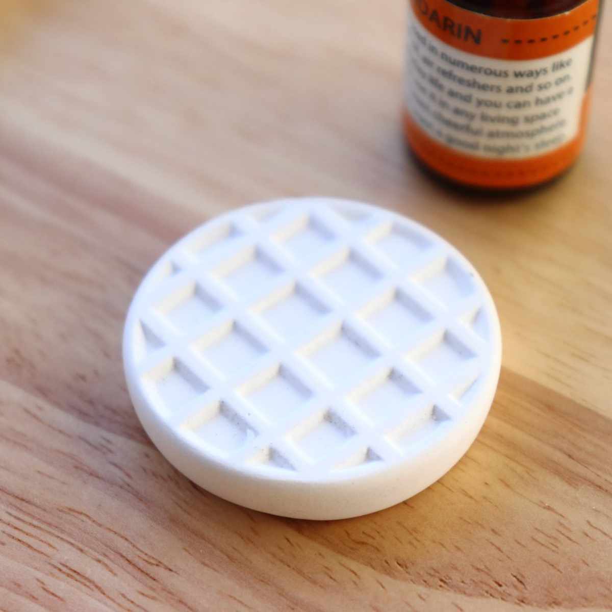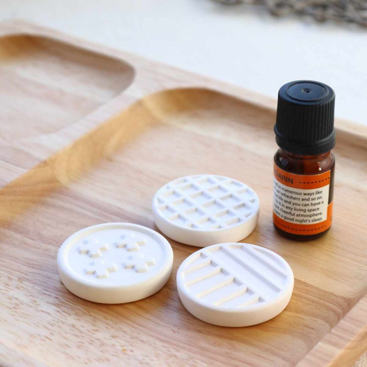 電気や火を使わず、エッセンシャルオイルを直接垂らすだけでやさしい香りを楽しめる素焼き陶器のアロマストーンです。インテリアになじむ3種類のエンボスデザインが特徴で、デザイン性と機能性を兼ね備えています。