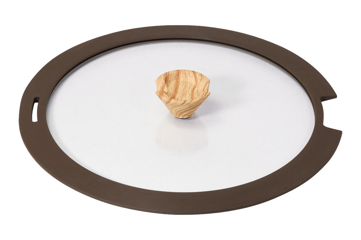 トルティーノシリーズの26cmサイズの鍋と一緒にお使いいただけるガラス蓋です。調理中に料理の様子を確認しやすいのでとっても便利。縁の一部がくぼんでいるので、専用ハンドルを装着したまま蓋ができます。
