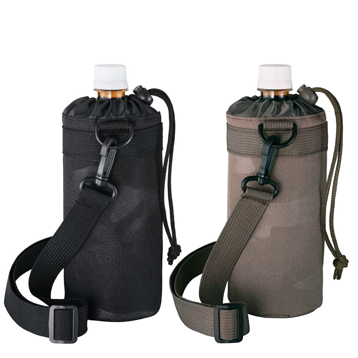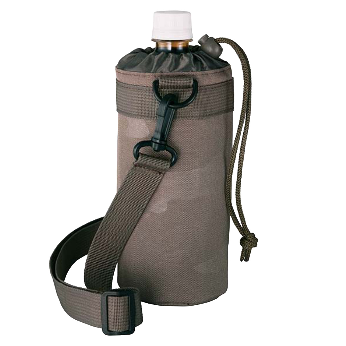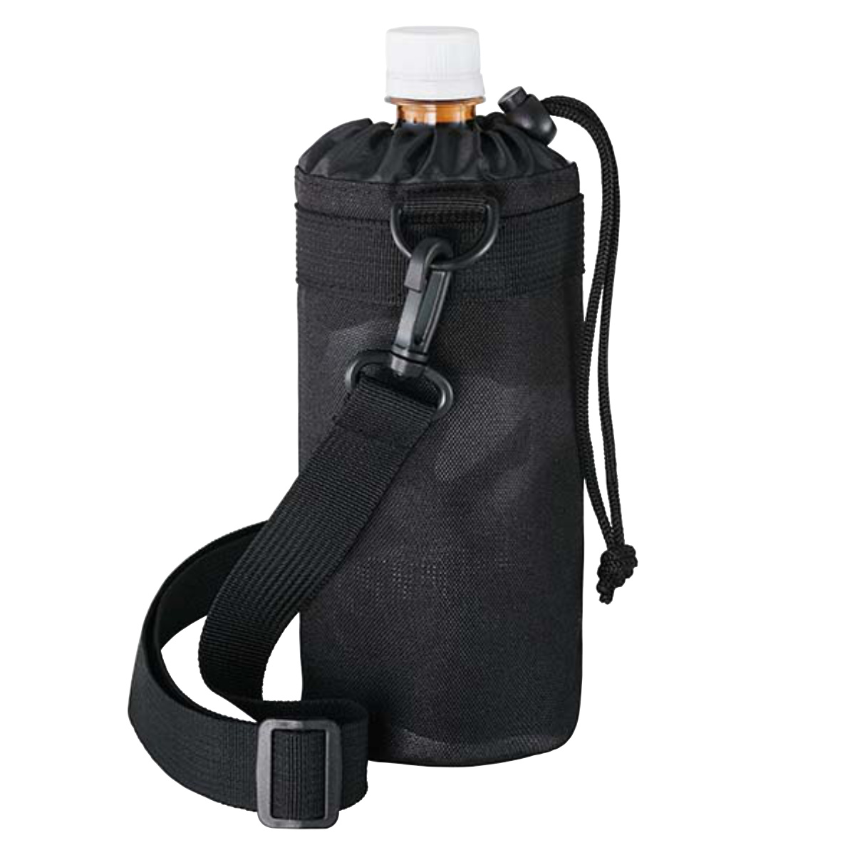 持ち歩きに便利なストラップが付いているので、アウトドアやスポーツシーンにぴったりです。また、カバーの上部は巾着仕様で、しっかり閉めればボトルが飛び出しにくく安心です。