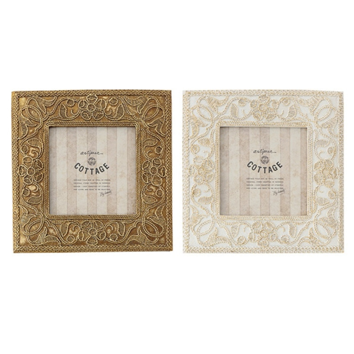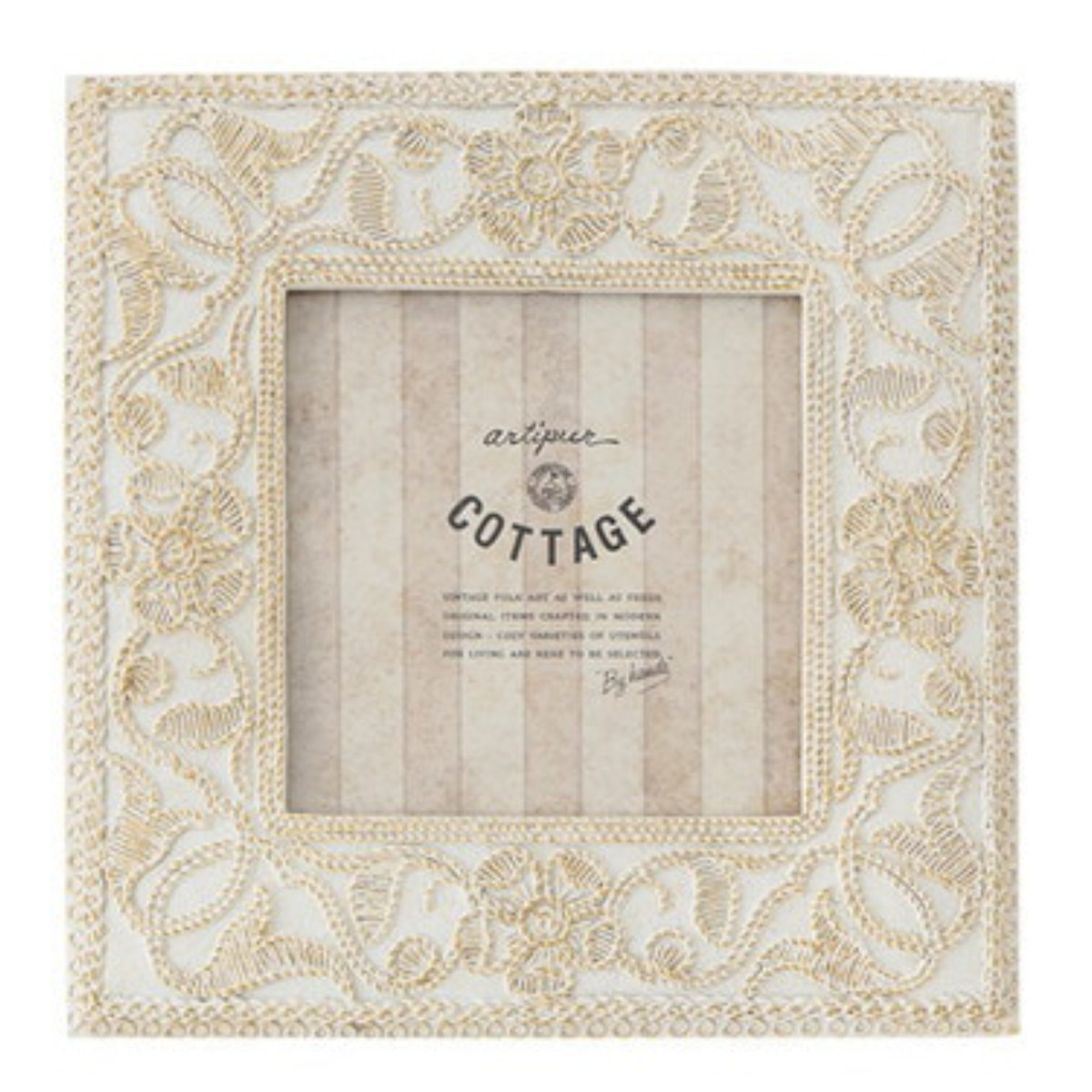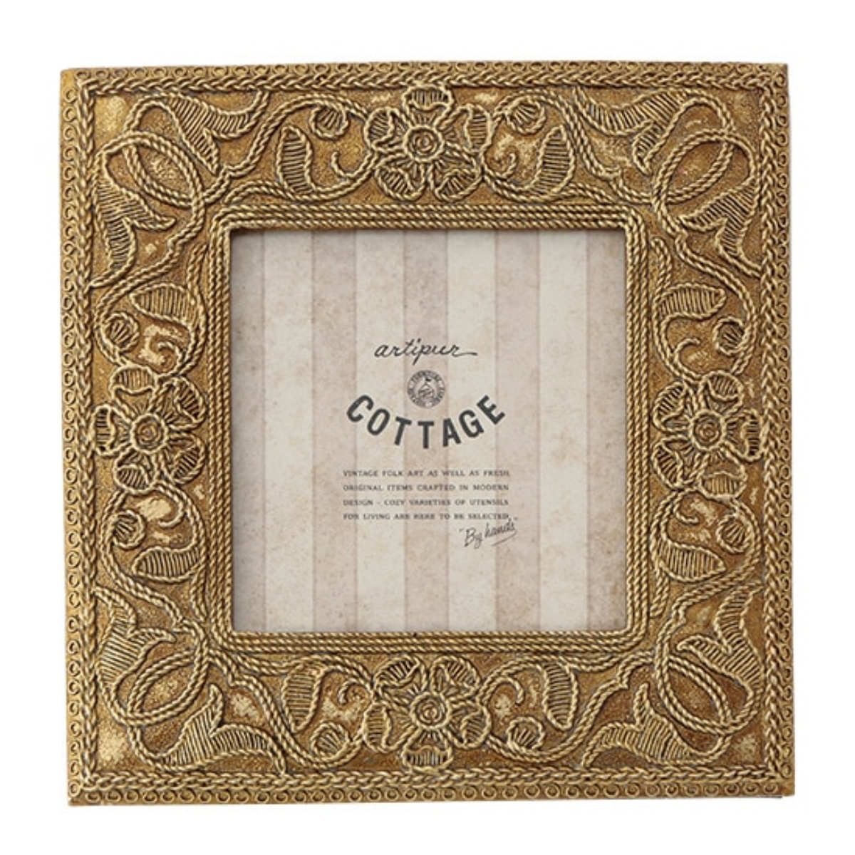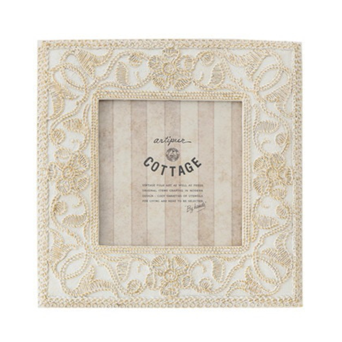 刺繍風の草花柄デザインがかわいらしい、スクエア型のフォトフレームです。アンティーク風の加工が大切な写真を洗練された印象にします。深みのある表情のデザインは、写真を入れずにただ置くだけでも映えるインテリアになります。