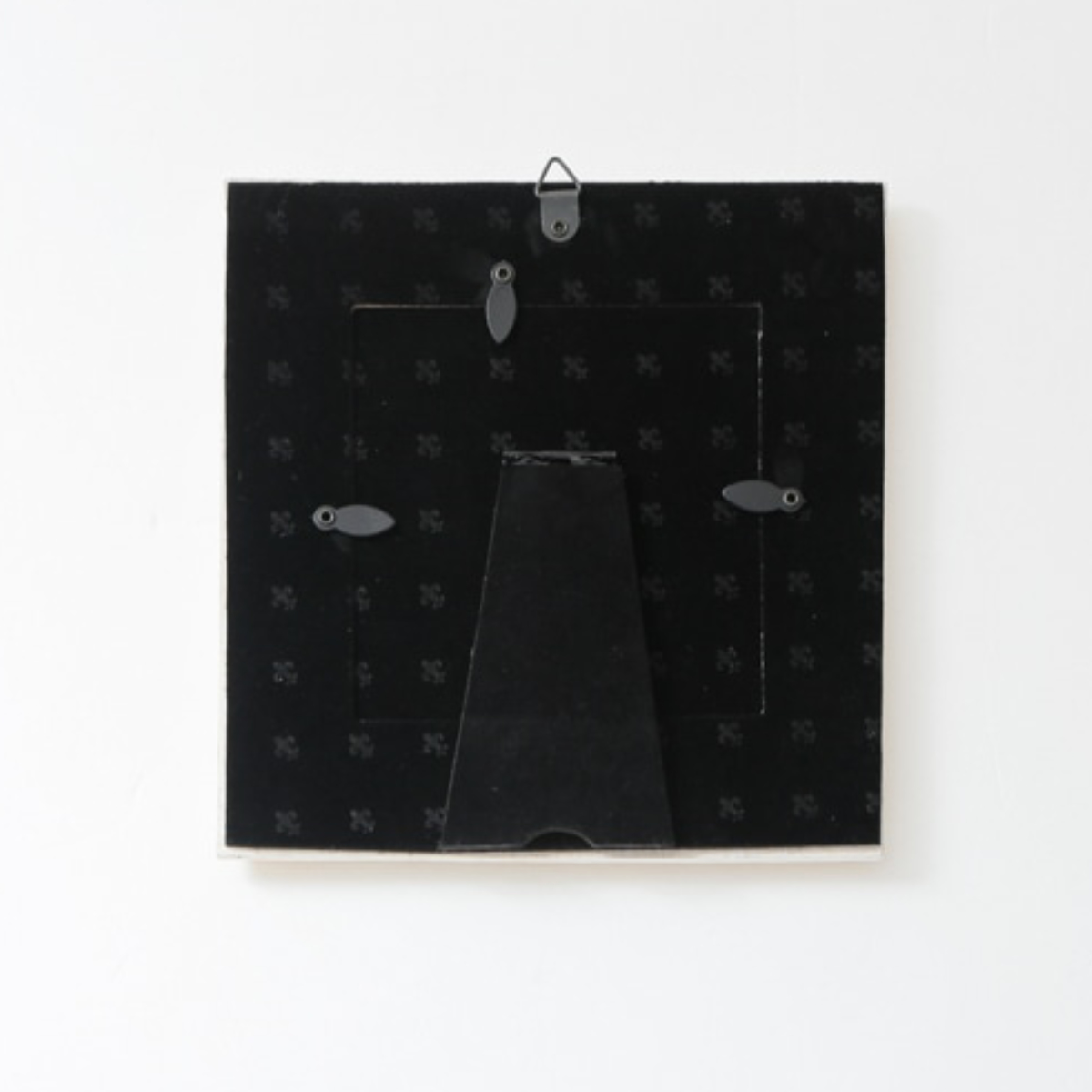 ●フォトスタンドとして立てて置くだけでなく、壁掛け用フックが付いているので壁にも取り付けられます。