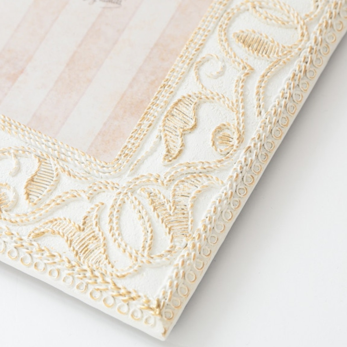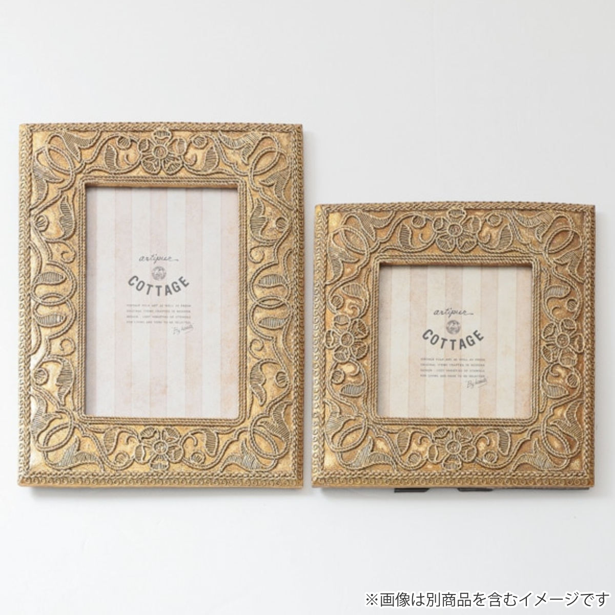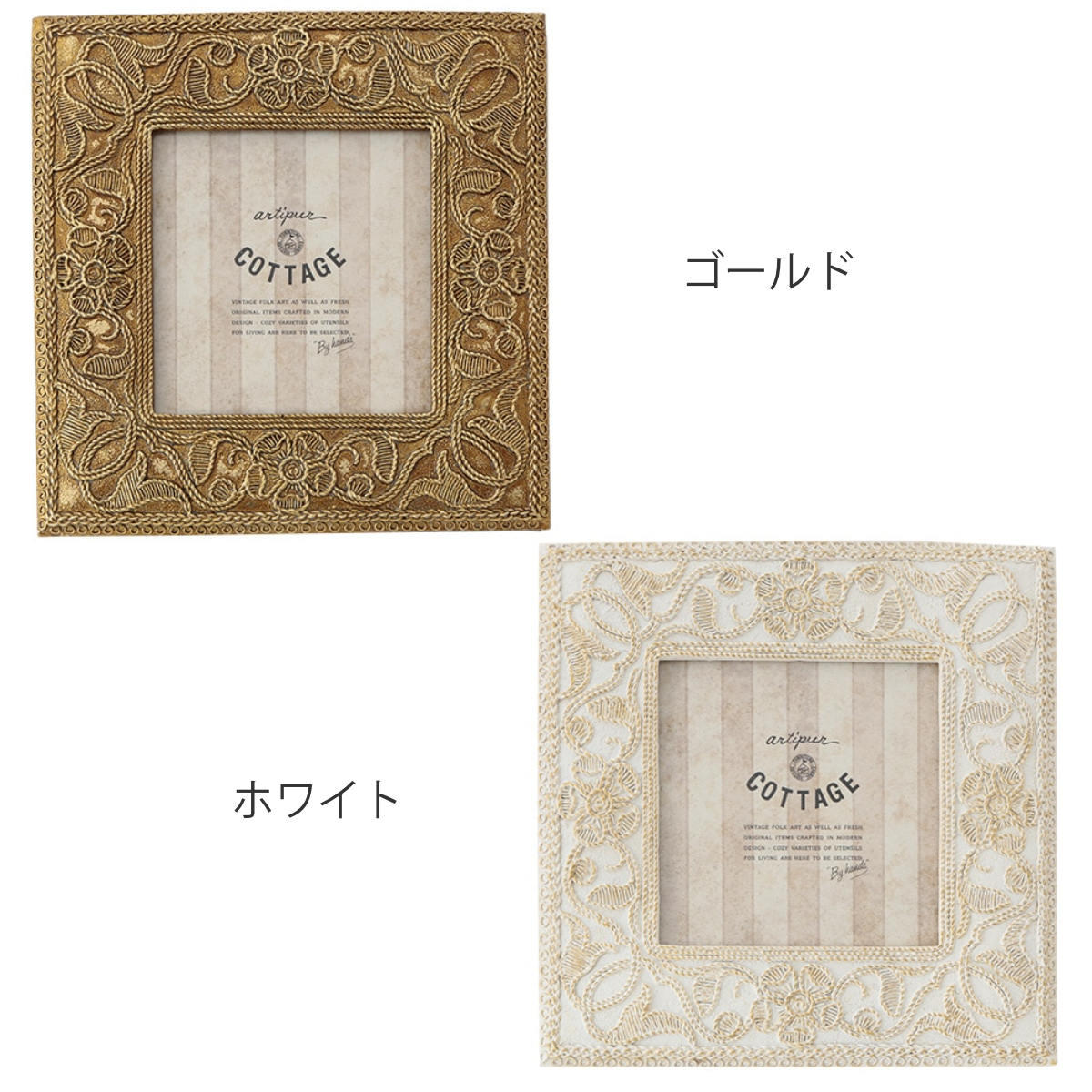 ●刺繍風の草花柄デザインが目を引く、アンティーク調のフォトフレームです。