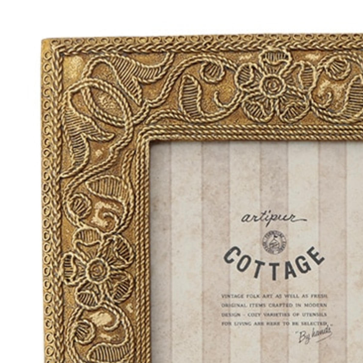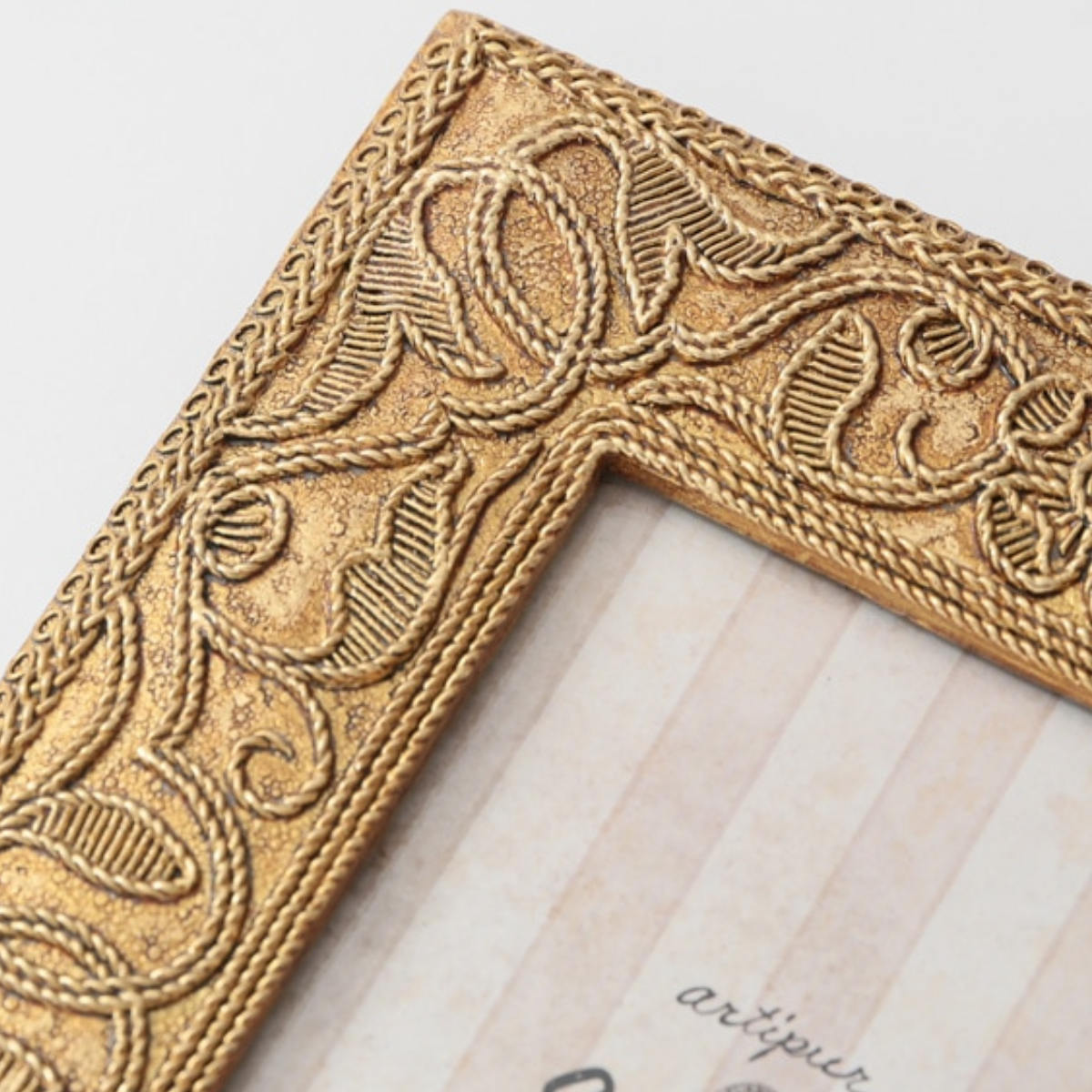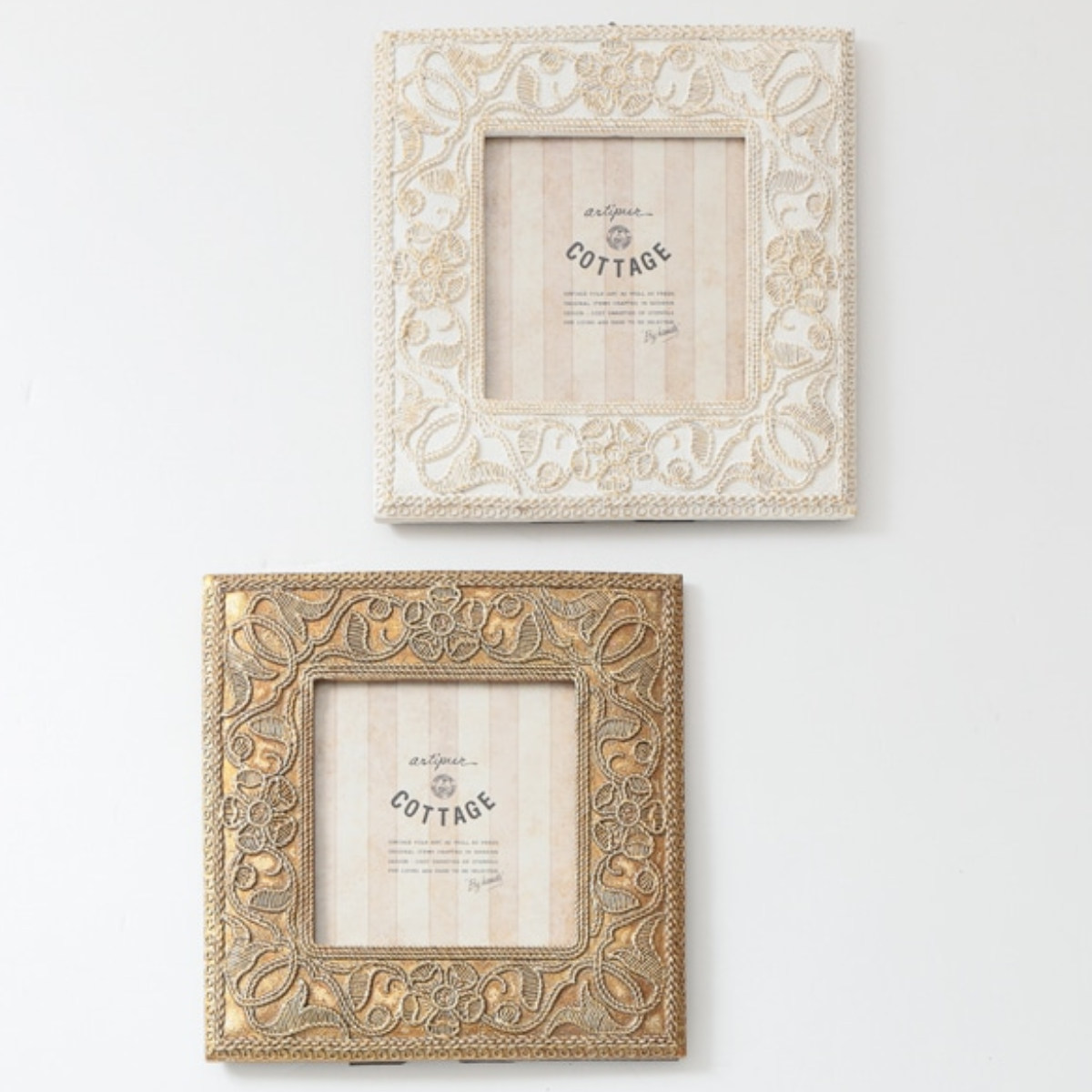 ●刺繍風の草花柄デザインが目を引く、アンティーク調のフォトフレームです。