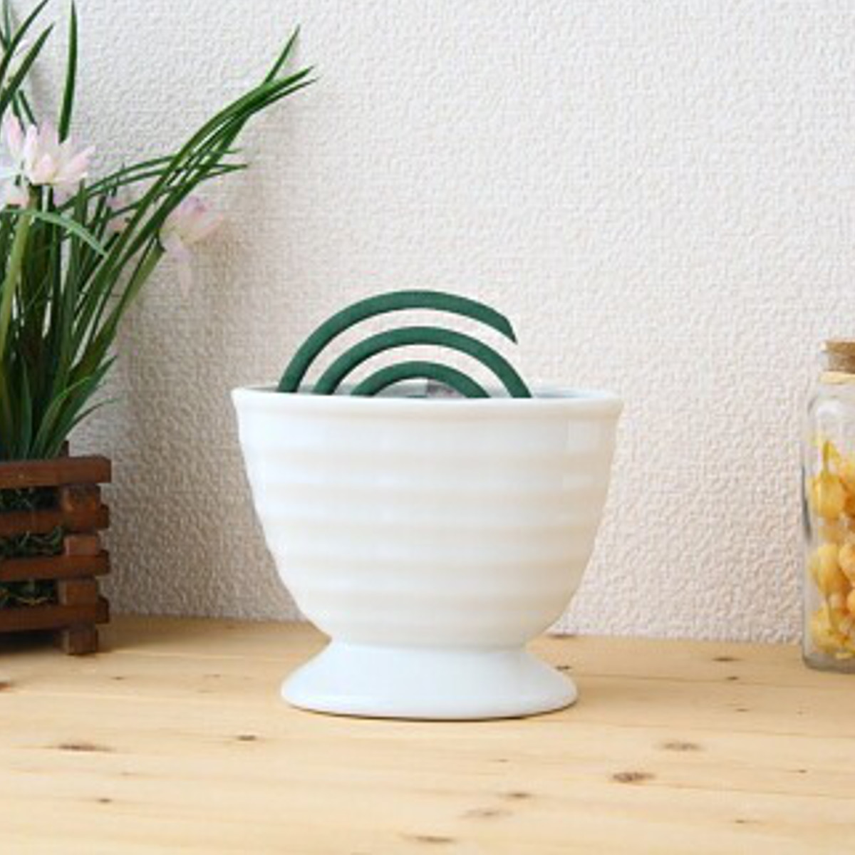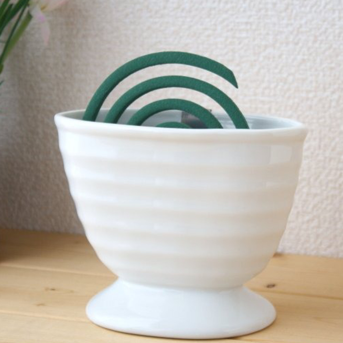 シンプルな白い陶器製でスッキリとしたデザインの蚊取り線香ホルダーです。蚊取り線香を安定して燃焼させ、灰の飛散を防いで後処理を楽にしてくれます。春・夏・秋の必需品。お家の中はもちろん、縁側やお庭、キャンプなどにおすすめです。