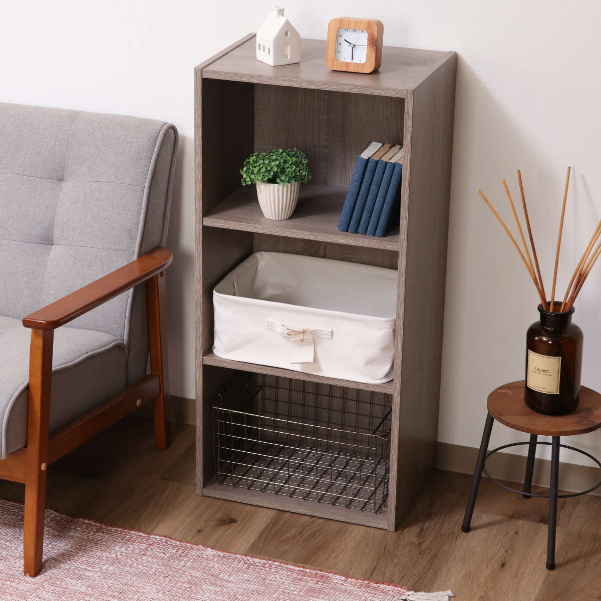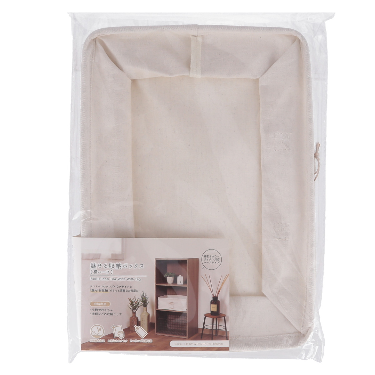一般的なカラーボックスの幅にぴったり収まるサイズです。ボックスの高さが13cmと浅めで、収納物を見つけやすいです。