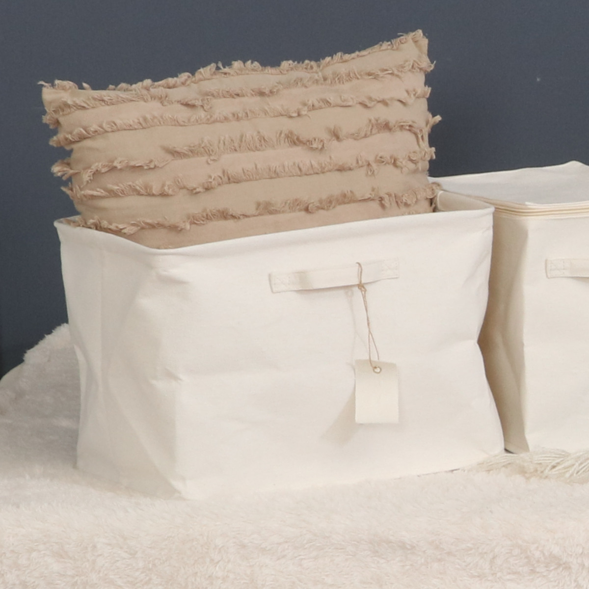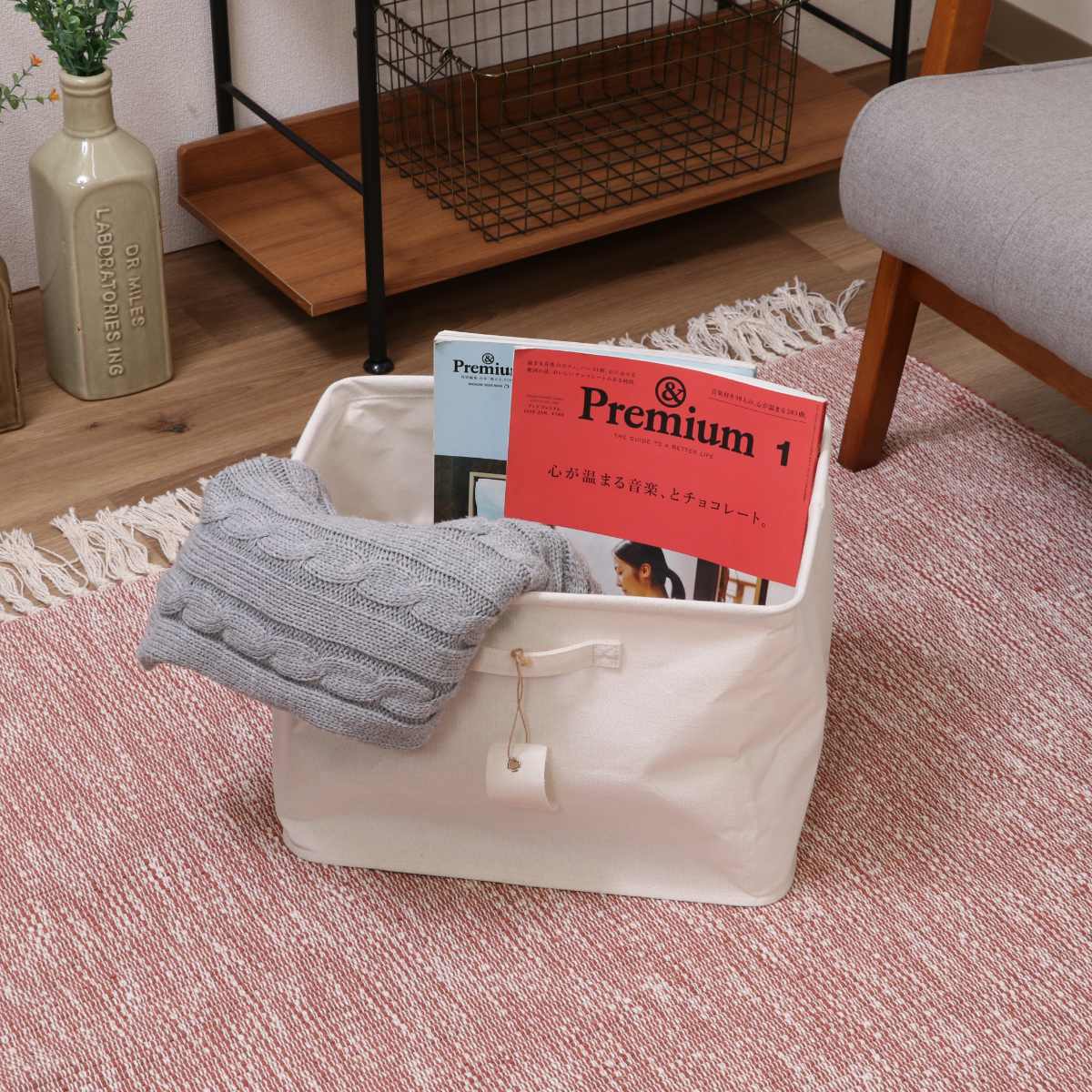 タオル、衣類、おもちゃ、雑誌などの生活雑貨をまとめて入れられる収納ボックスです。「魅せる収納」として、リビング、寝室、玄関などさまざまな場所の整理整頓におすすめです。