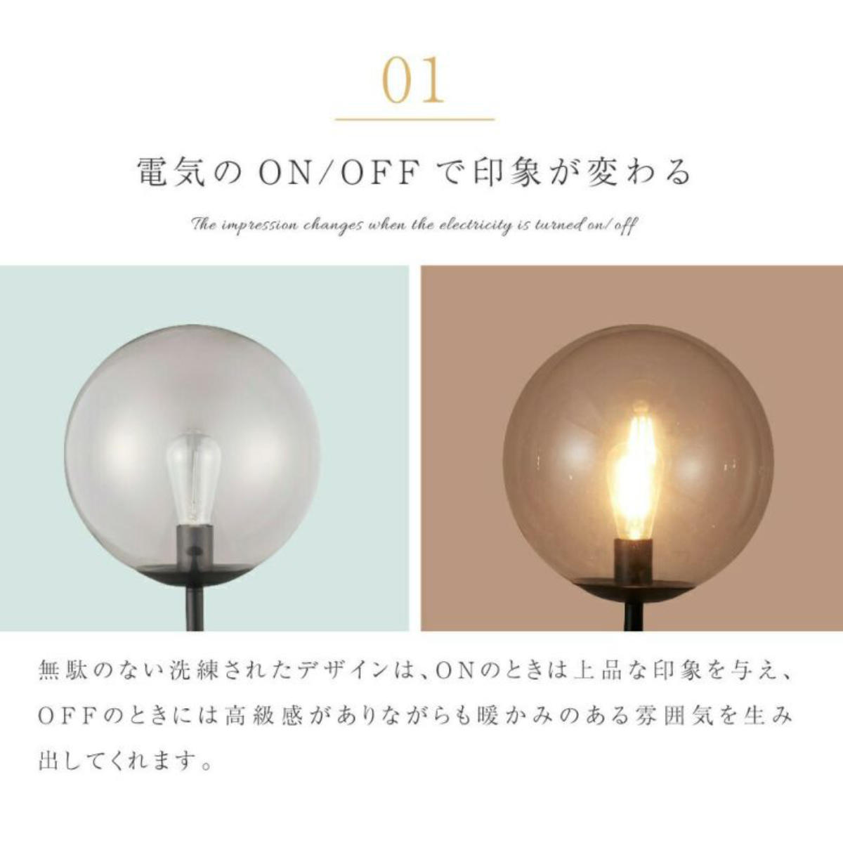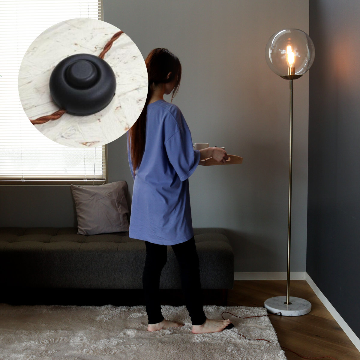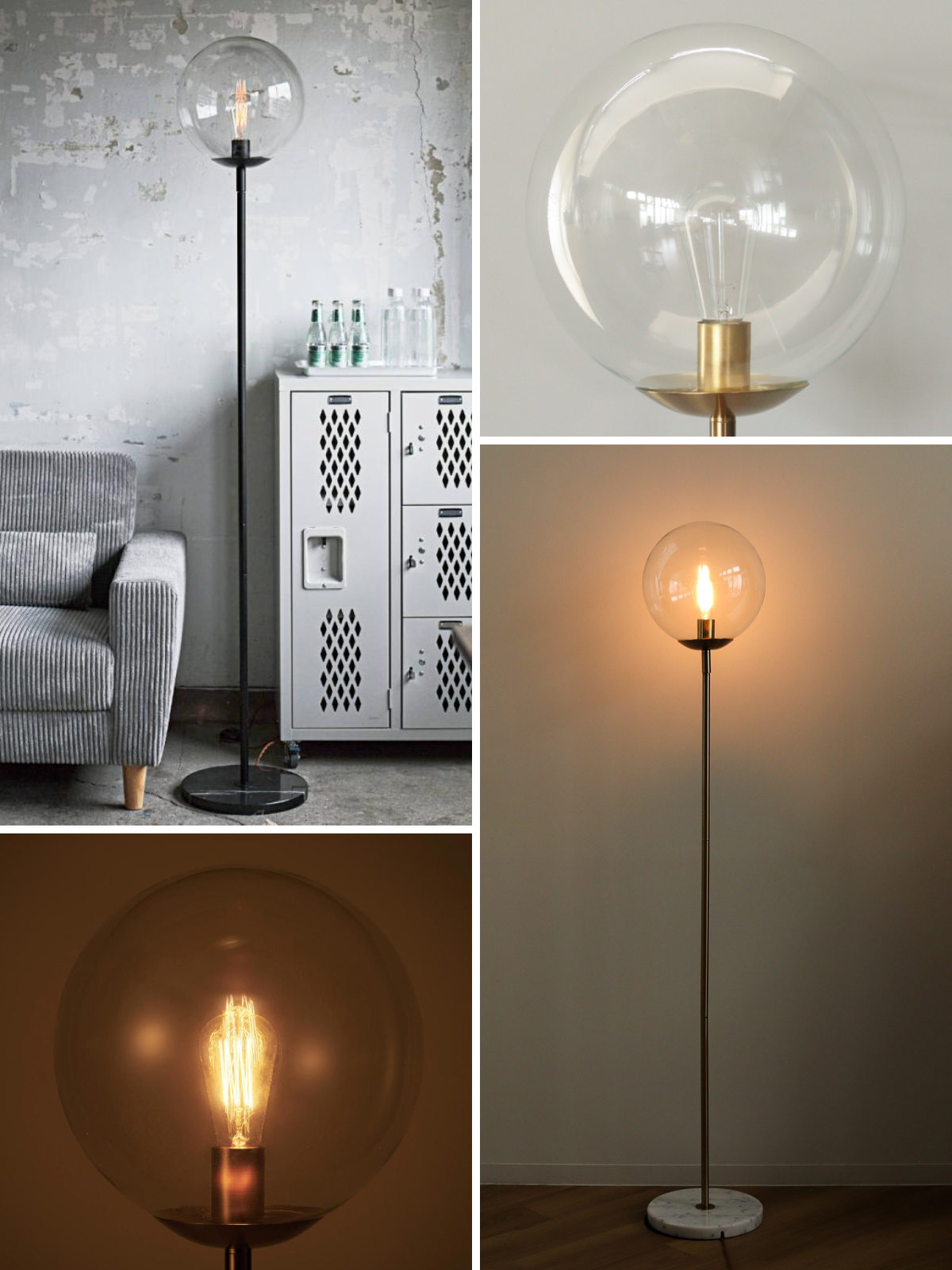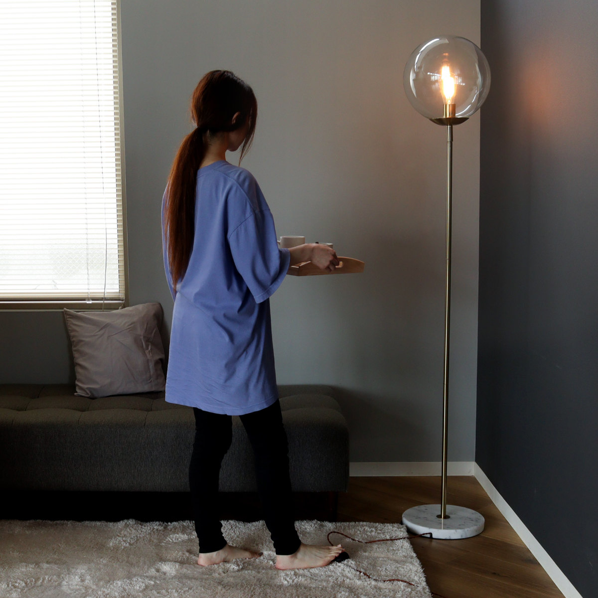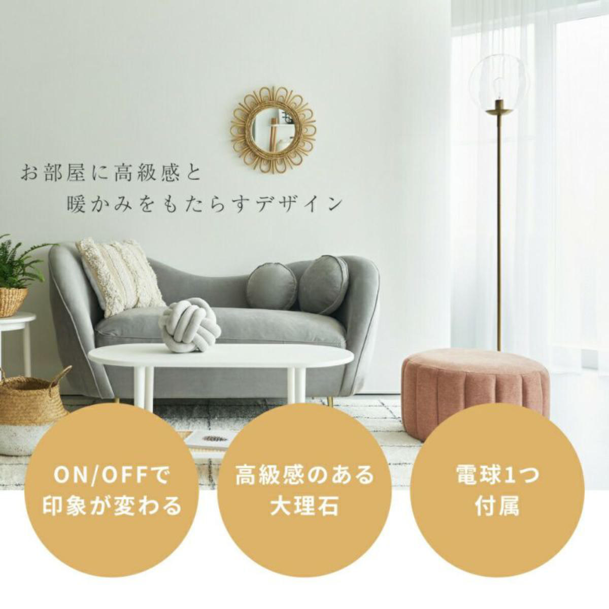 丸いガラスでクラシックなデザインのスタンドライト。足元は大理石で華やかさと高級感をプラスします。カラーはブラックとゴールドの2色からテイストに合わせてお選びください。