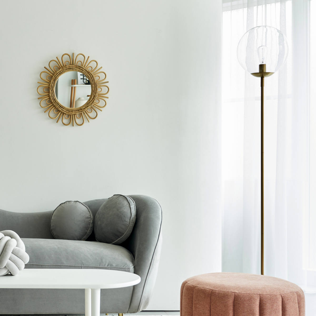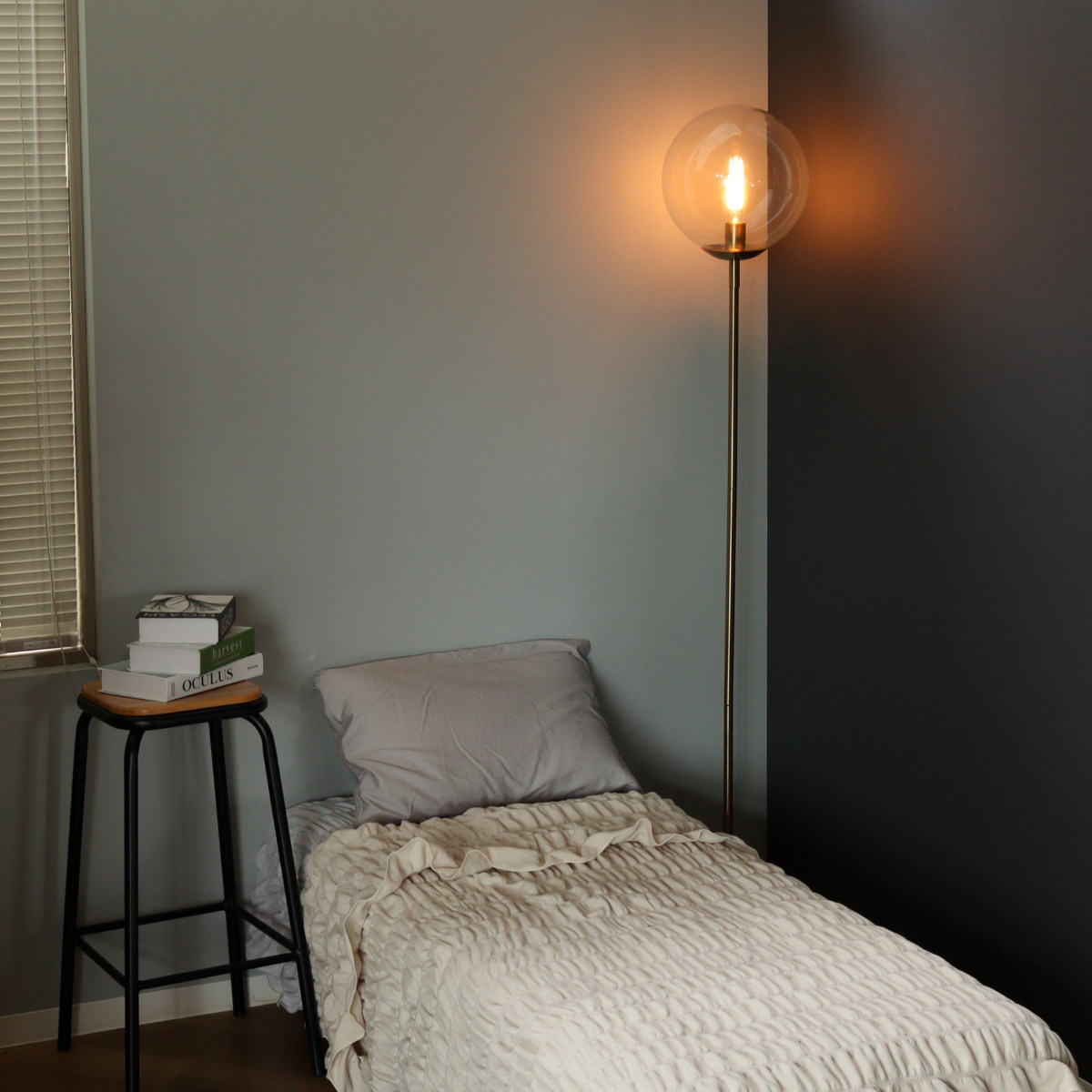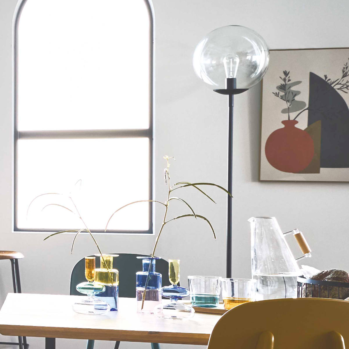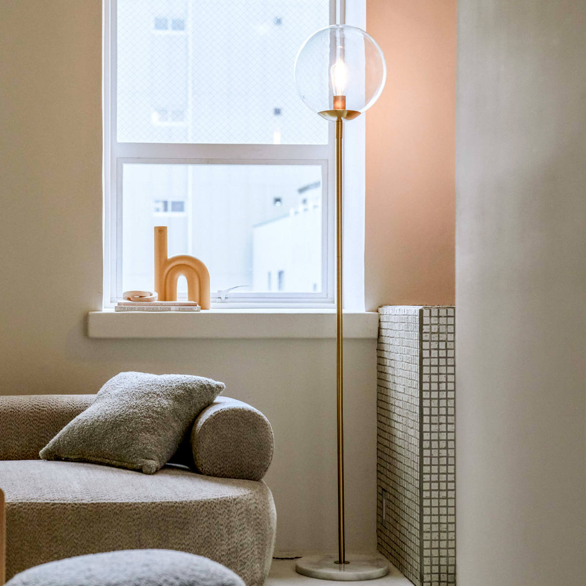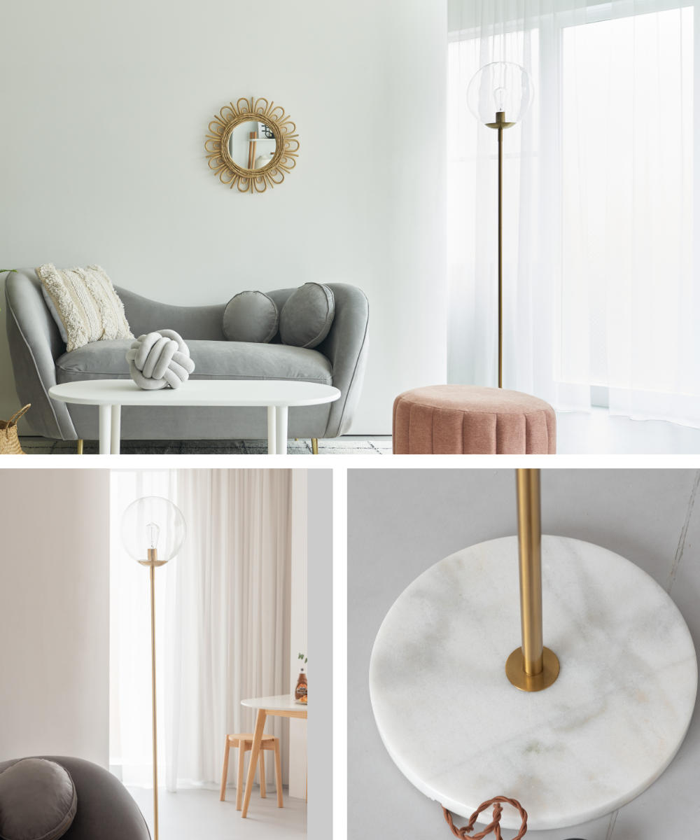 丸いガラスでクラシックなデザインのスタンドライト。足元は大理石で華やかさと高級感をプラスします。カラーはブラックとゴールドの2色からテイストに合わせてお選びください。