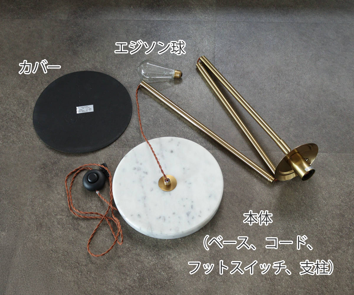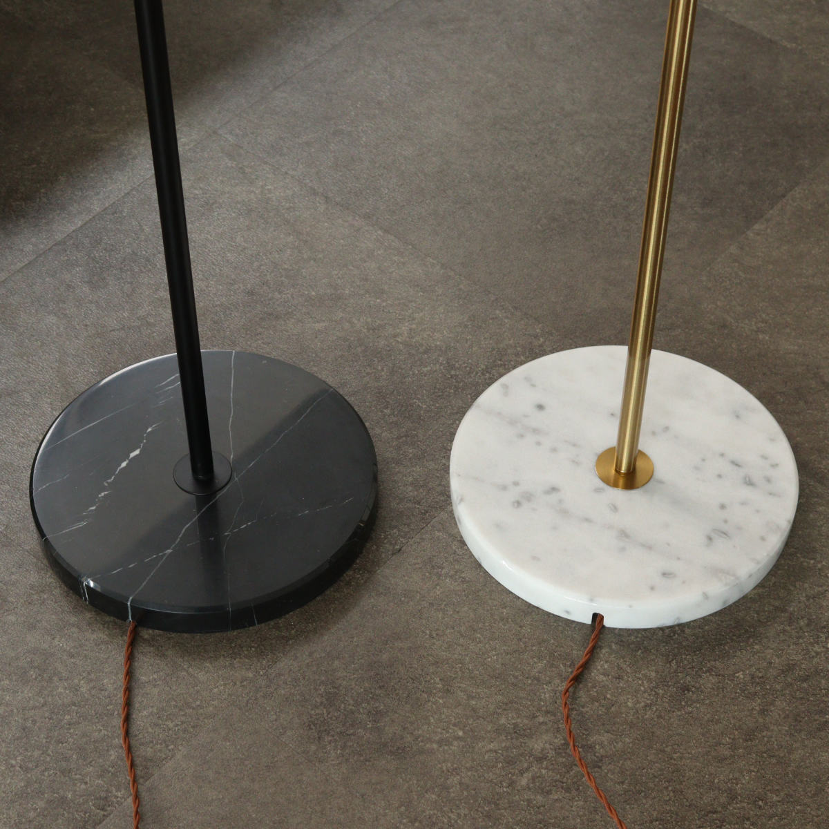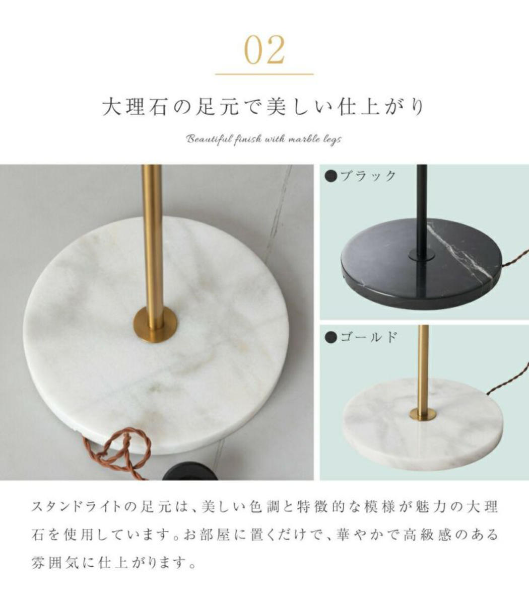 スタンドライトの足元は美しい大理石を使用。天然石ならではの柄や色合いに個体差があり、一点一点異なる表情が魅力です。