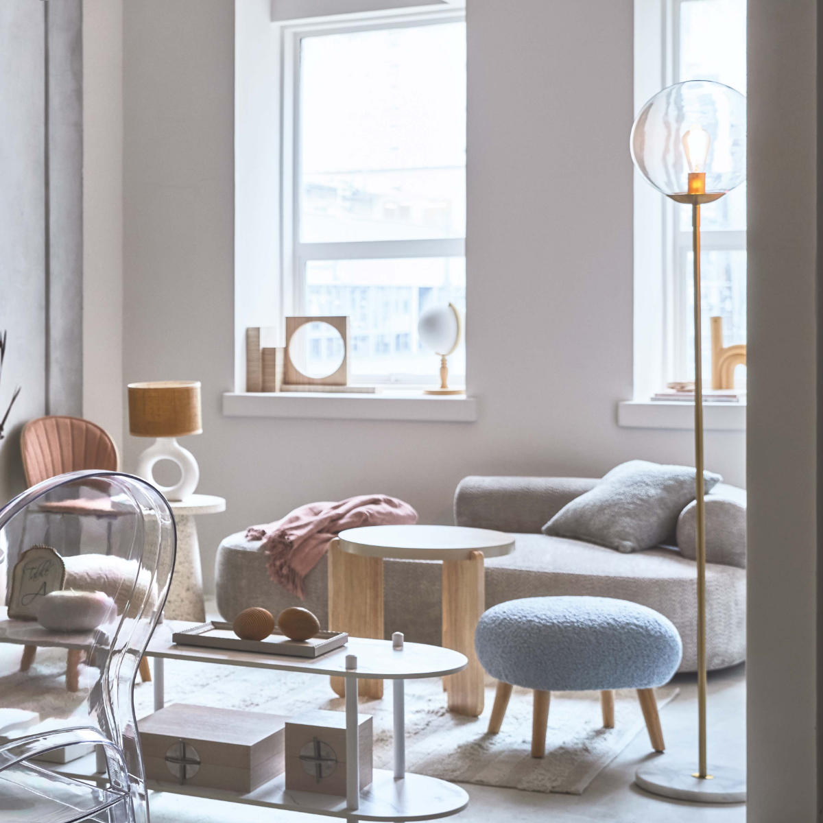 韓国インテリアやフレンチシックなテイストに馴染む、ナチュラルで洗練された佇まい。灯りをともせば、お部屋がやさしく包まれるような心地よい雰囲気に。