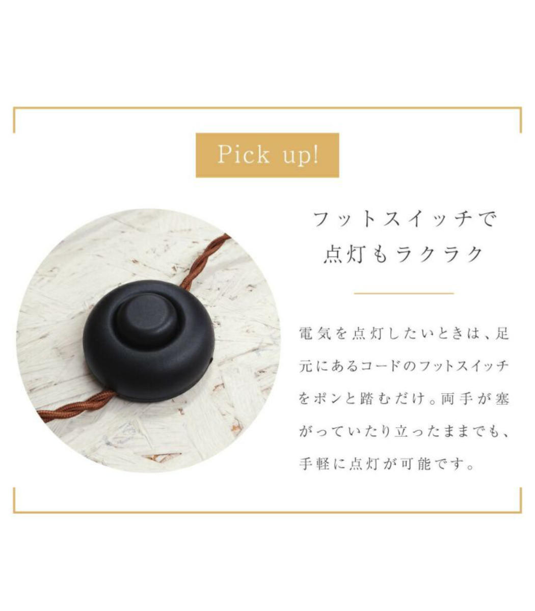 足で踏むことによって電源のON/OFFができるフットスイッチ仕様です。手がふさがっている時にも操作できるので便利です。