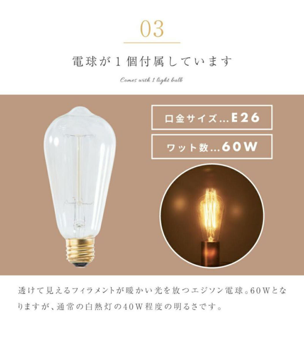 | 備考 | 対応電球:E26/60W(LED対応) ※メーカー保証を受けられる際は、商品に同梱されている保証書、購入日がわかるもの(領収書や納品書など)が必要になります |