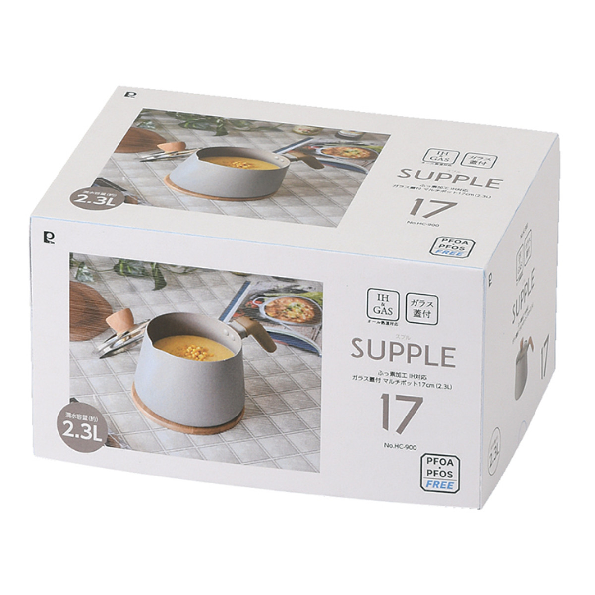 | 材質 | 本体:アルミニウム合金 内面:ふっ素樹脂塗膜加工 外面:焼付け塗装 はり底:ステンレス鋼(クロム16%) 取っ手:フェノール樹脂 蓋:強化ガラス(全面物理強化) 縁リング:ステンレス鋼 つまみ:天然木 |
