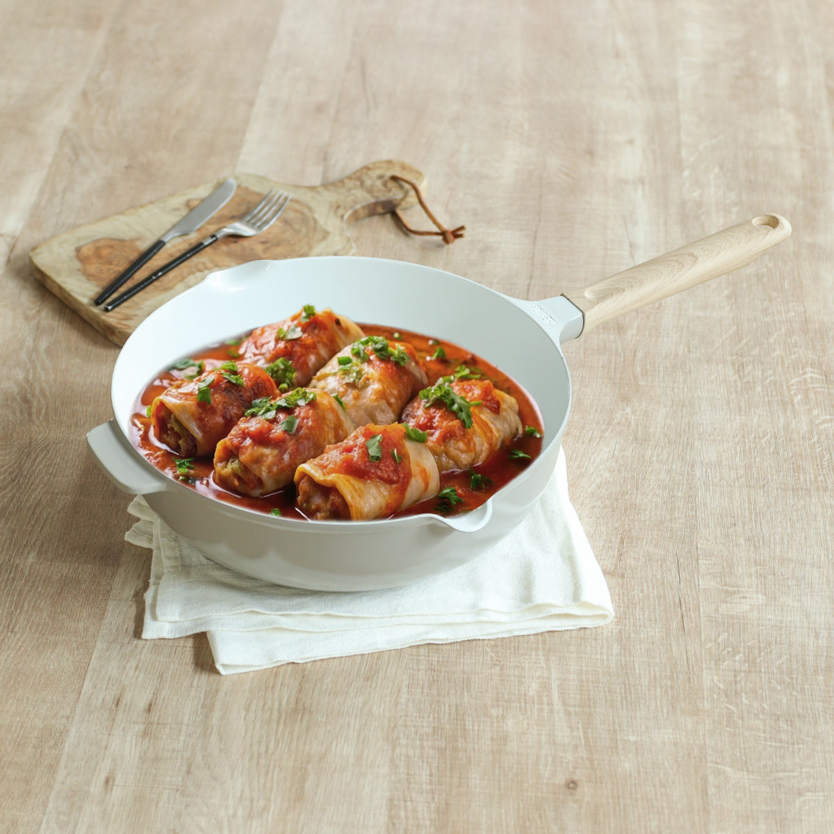 深型28cmは、カレーやシチューなどの煮込み料理、野菜炒めやパスタソース作りにぴったりのサイズです。深さがあるので食材がこぼれにくく、まとめて作り置きしたいときにも便利です。