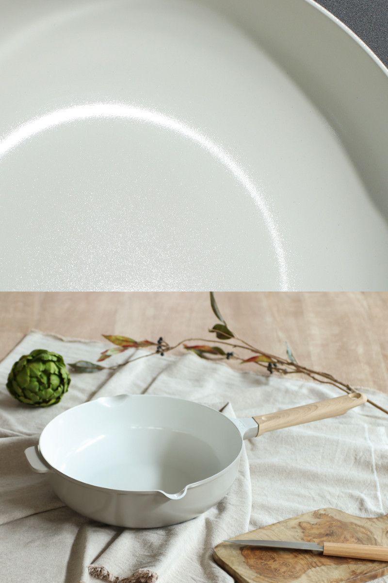 内面が明るい白色のため、食材の焼き加減や煮込み具合がひと目で分かります。炒め物から煮込み料理まで幅広く使えます。