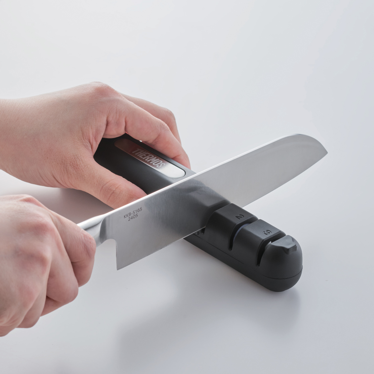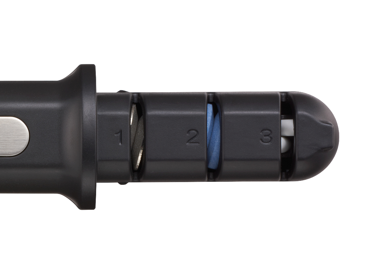 粗さの異なる3つの砥石でしっかり研げる日常のメンテナンスにぴったりなシャープナーです。