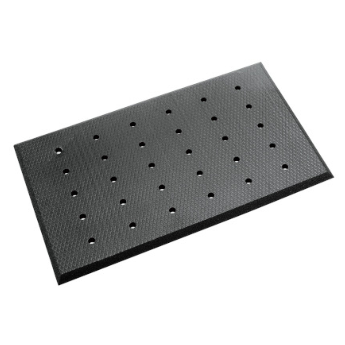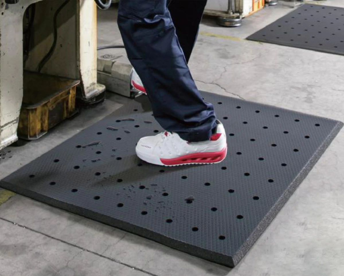 穴が空いているので油など液体の逃げ道を確保し、マット上に液体が溜まりにくく滑りやすくなるのを防ぎます。