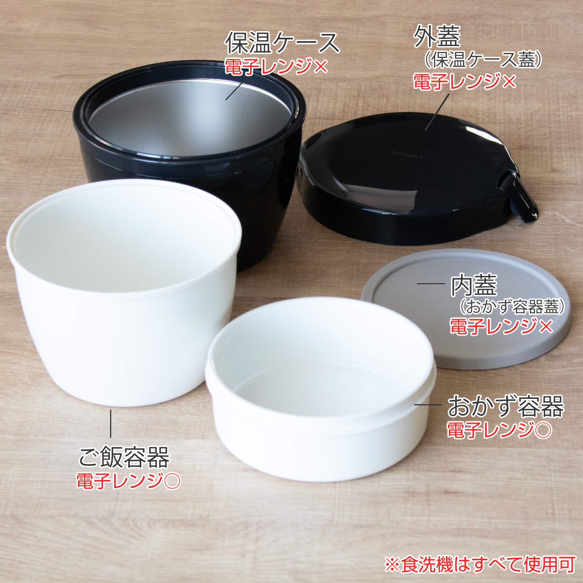 | 備考 | ご飯容量:お茶碗約2杯分 ご飯容器、おかず容器は蓋を外して電子レンジ使用可 保温ケース以外は食洗機使用可 |