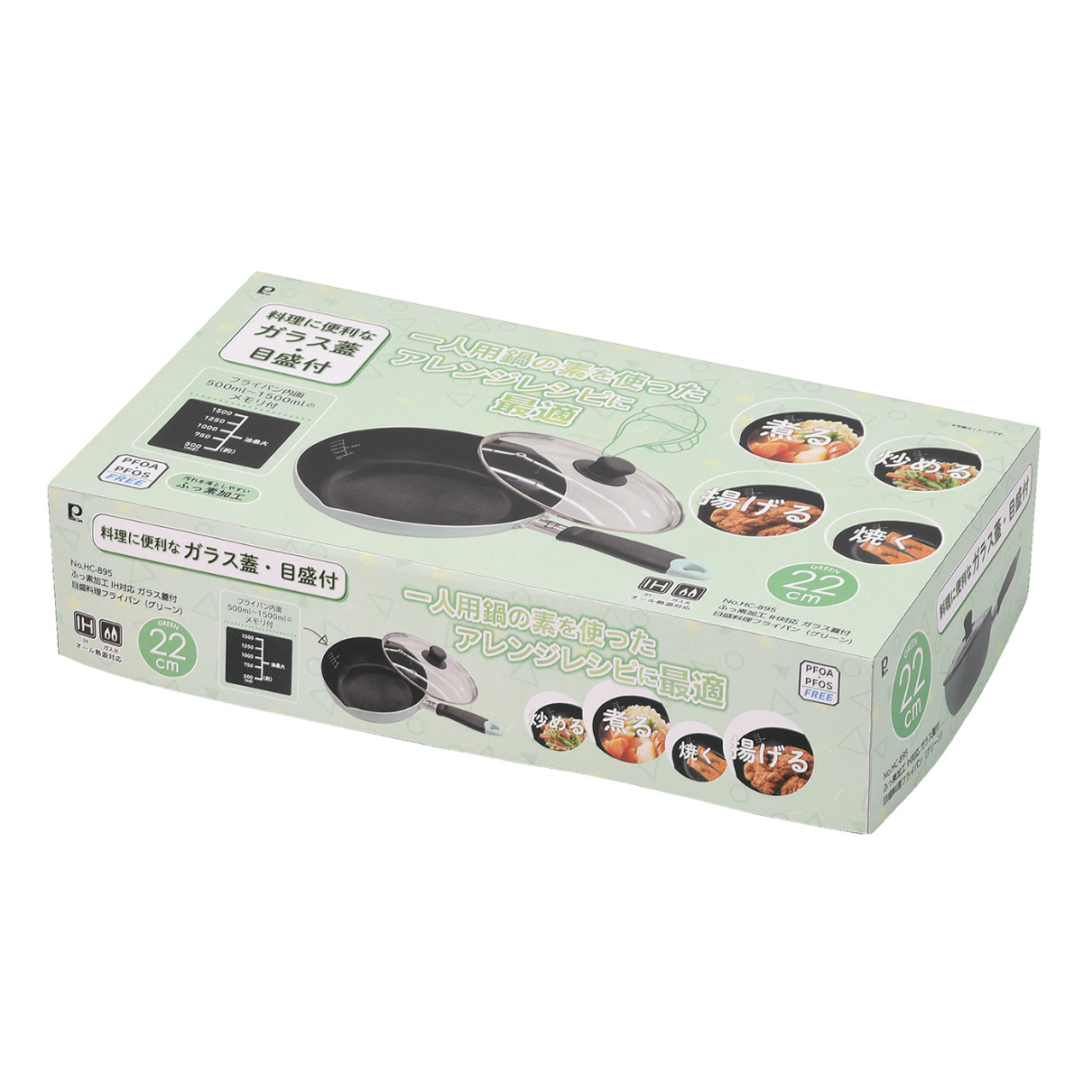 ●ひとり暮らしや少人数のご家庭にぴったりな、22cmの目盛付き深型フライパンです。