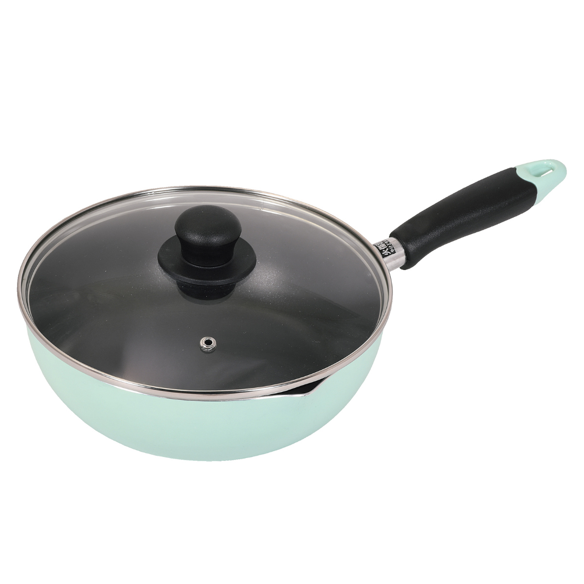 ひとり暮らしや少人数のご家庭にぴったりな、22cmの深型フライパンです。フッ素加工でお手入れしやすく、炒め物、煮物、揚げ物など、さまざまな調理にマルチに対応し、毎日の料理をやさしくサポートします。ガス火・IHにも対応しています。