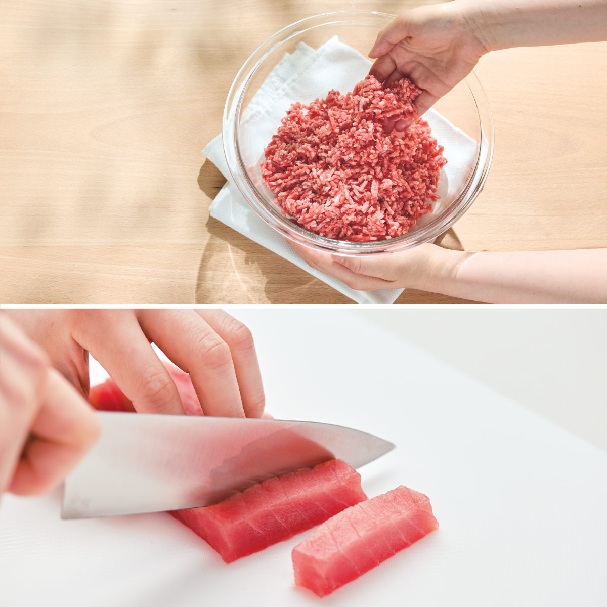 2方向からの同時加熱ですばやくムラを抑えた解凍が可能です。半解凍・全解凍どちらも対応してるので、ひき肉や刺身も絶妙な仕上がりに解凍できます。