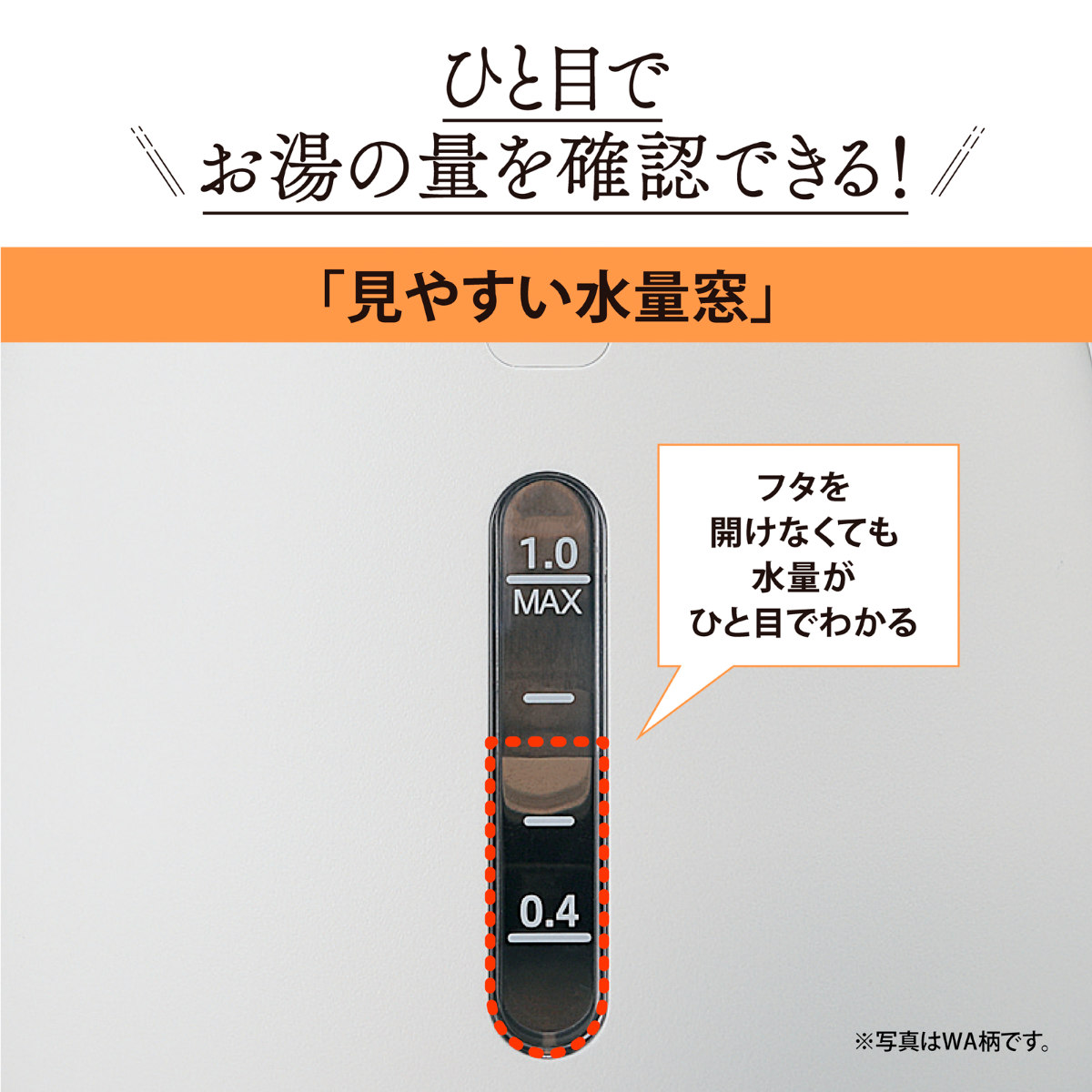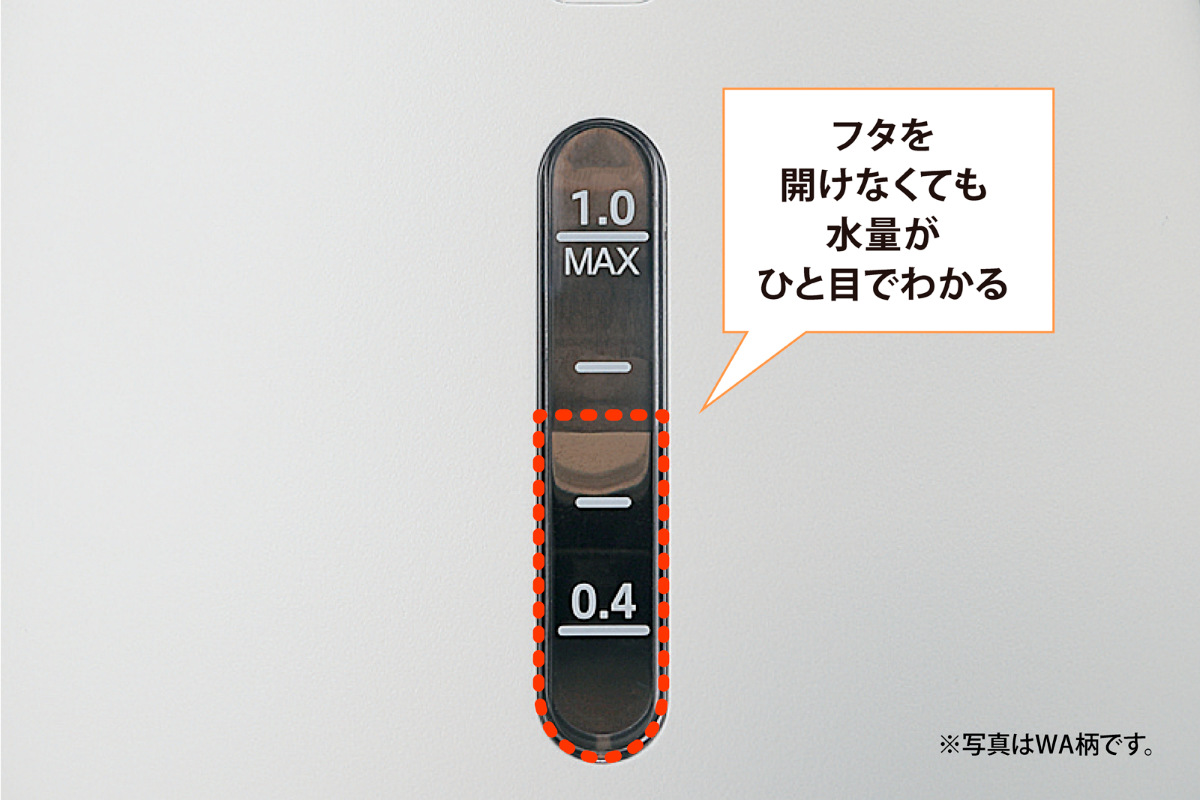 フタを開けなくても、どれだけ水を入れたのかひと目でわかる窓が付いています。