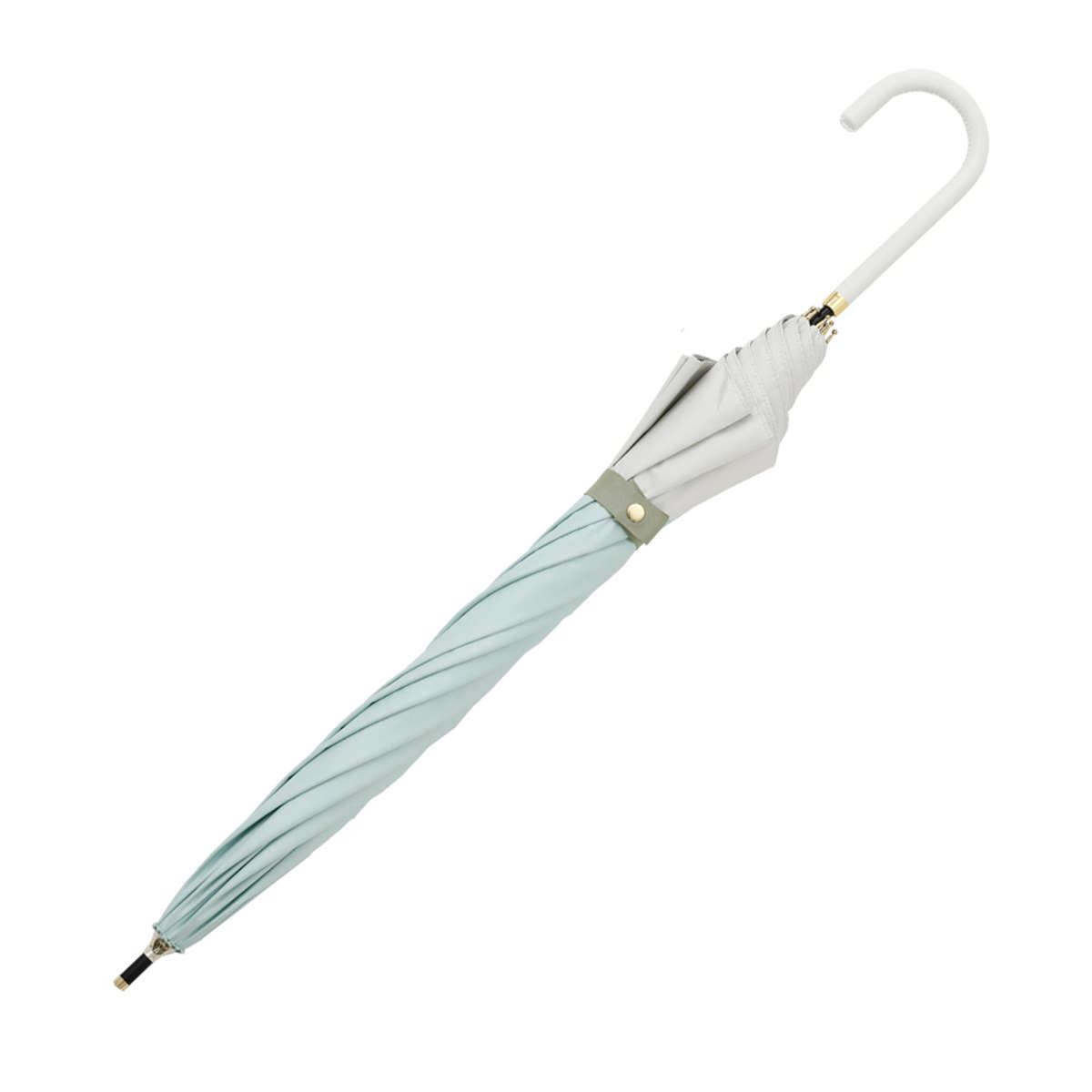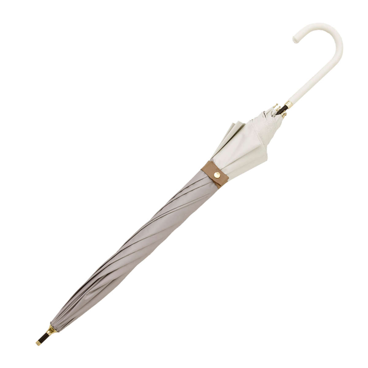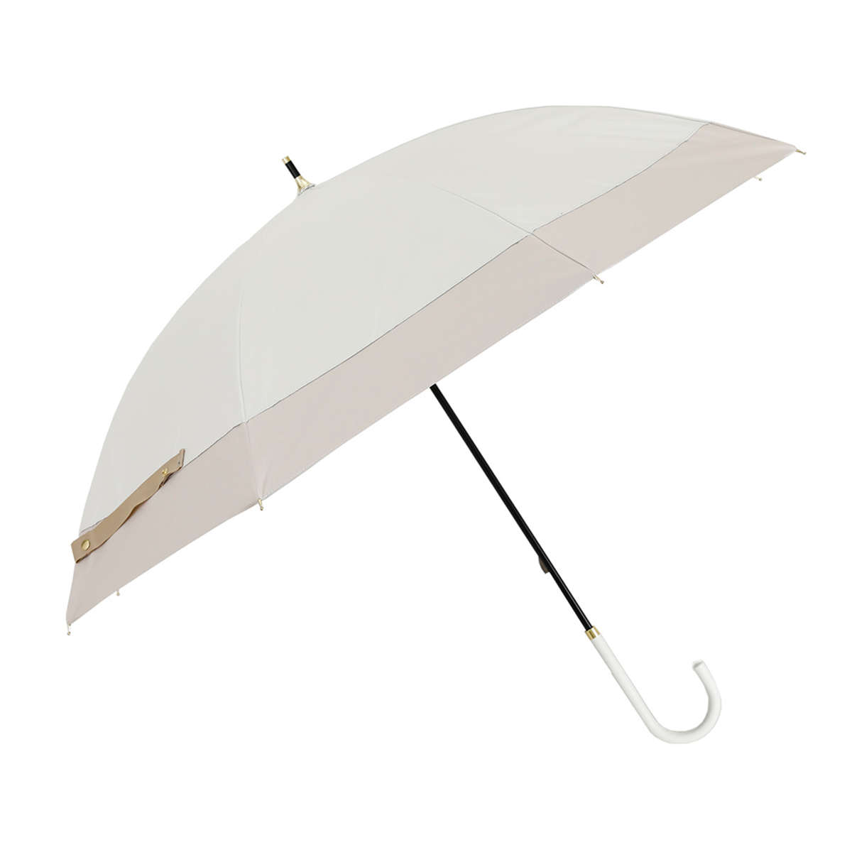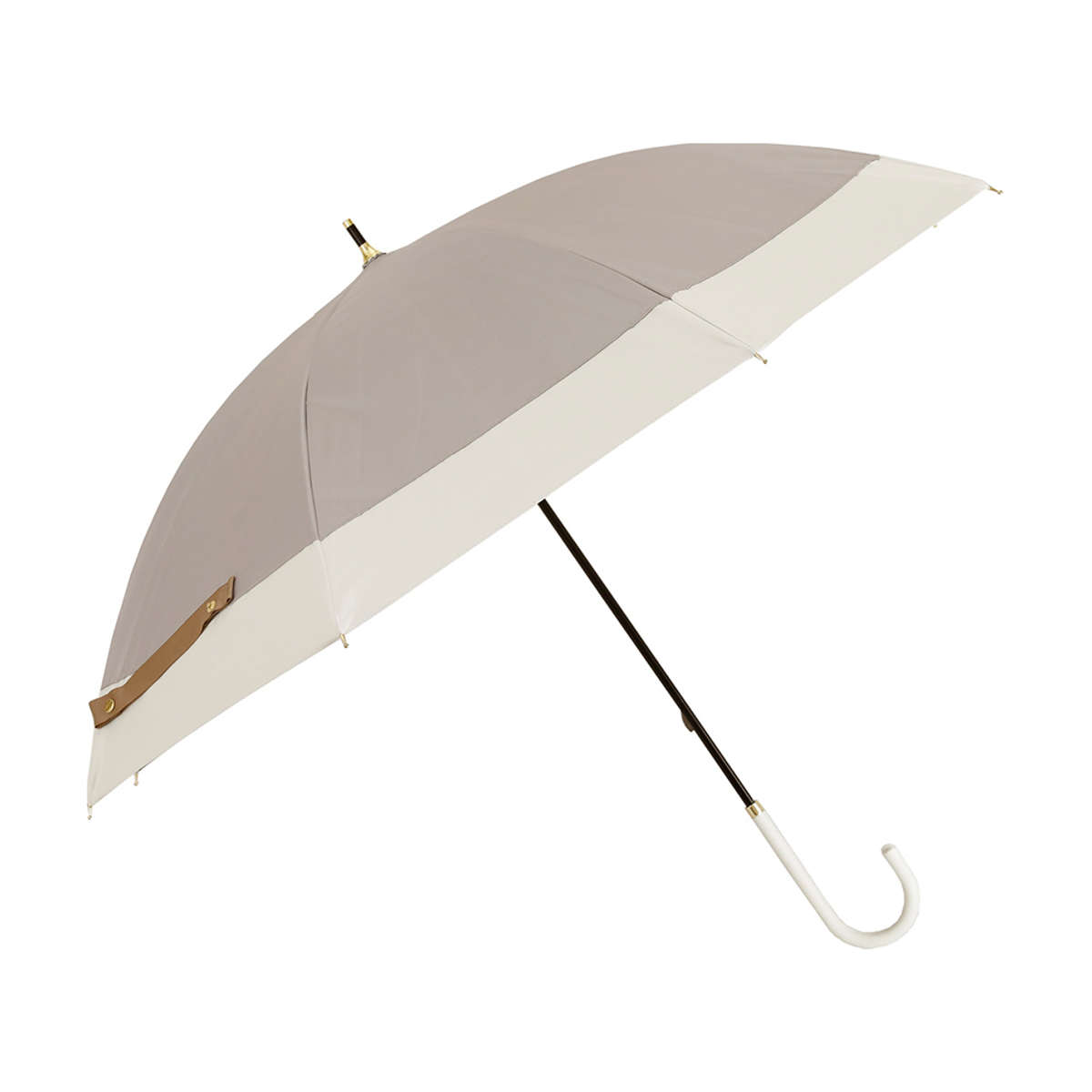 2色の生地を使用したバイカラーデザインが魅力。シンプルすぎず、程よいアクセントが効いているため、コーディネートを邪魔せず毎日使いたくなる傘です。