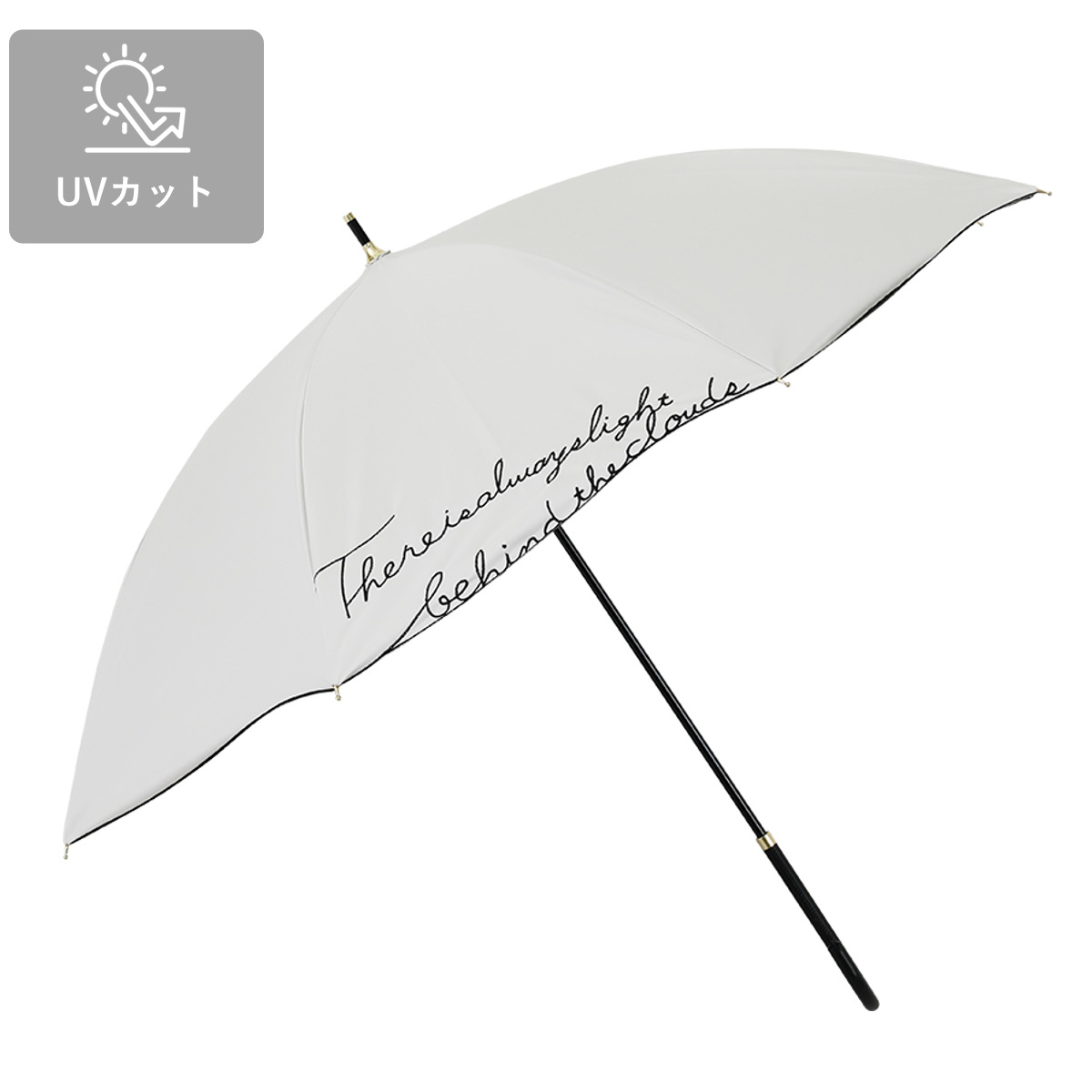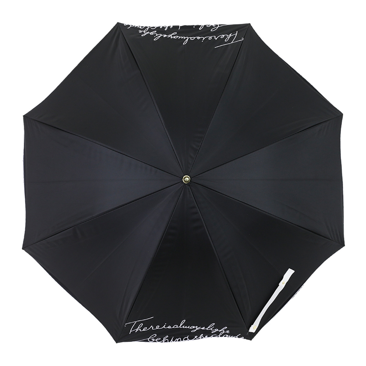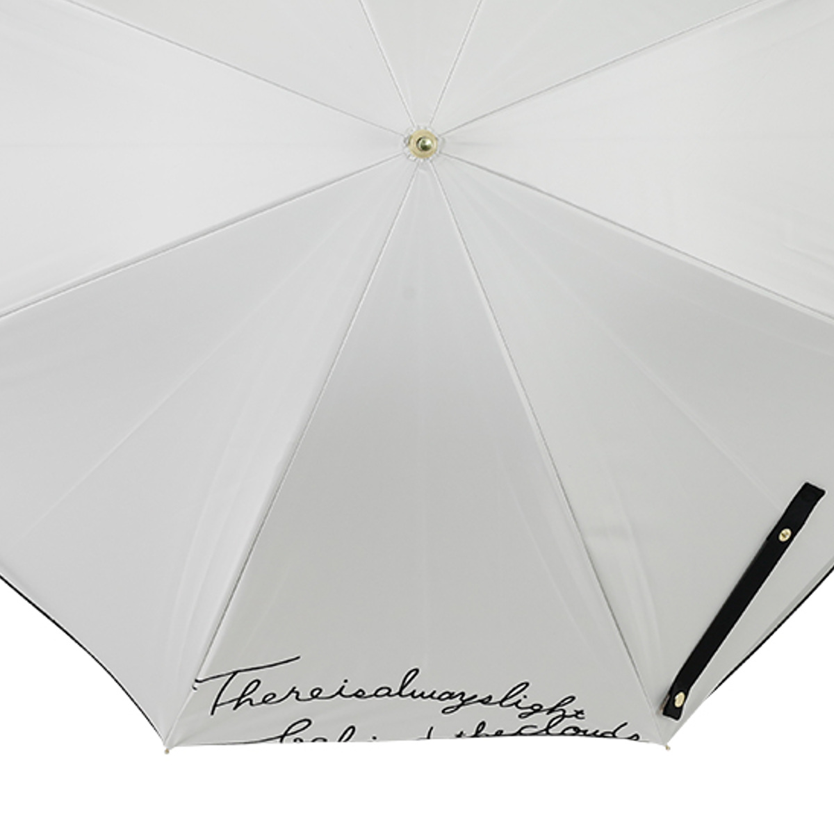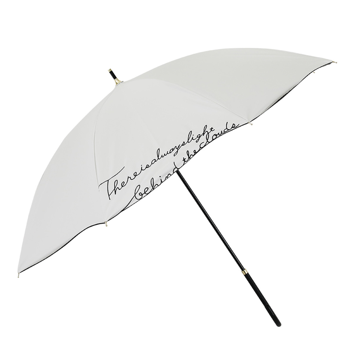 「雲の向こうは、いつも青空。」という意味の言葉がさりげなく刺繍されています。シンプルすぎず、程よいアクセントが効いているため、コーディネートを邪魔せず毎日使いたくなる傘です。