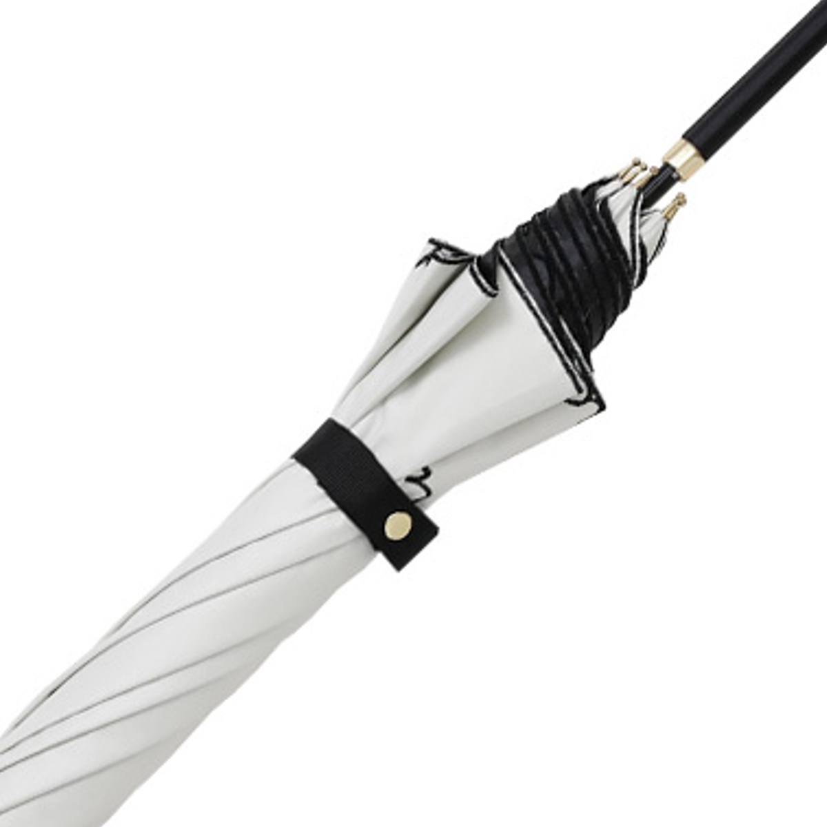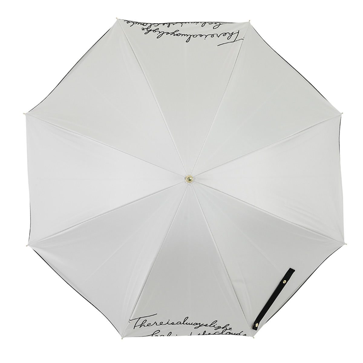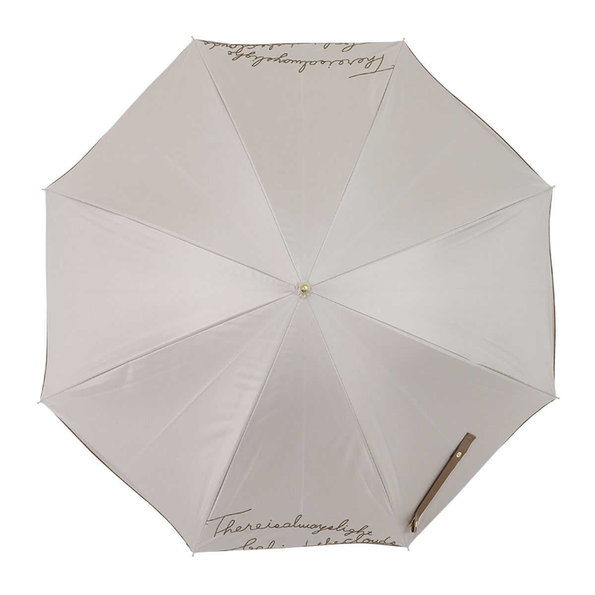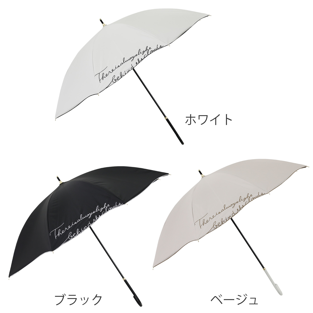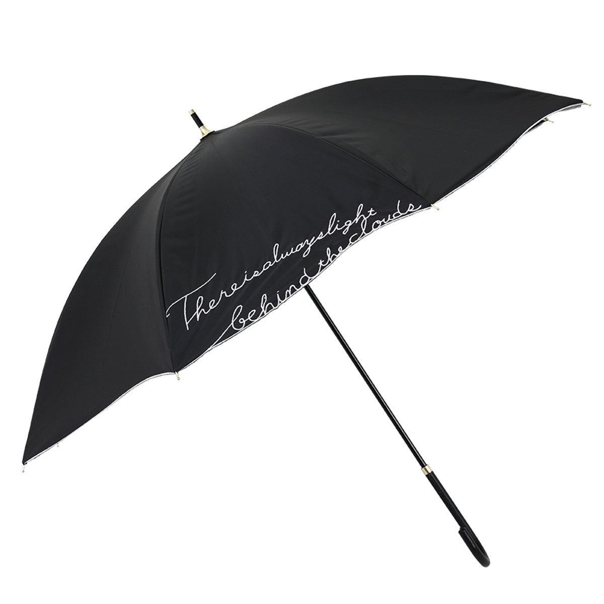 「雲の向こうは、いつも青空。」という意味の言葉がさりげなく刺繍されています。シンプルすぎず、程よいアクセントが効いているため、コーディネートを邪魔せず毎日使いたくなる傘です。