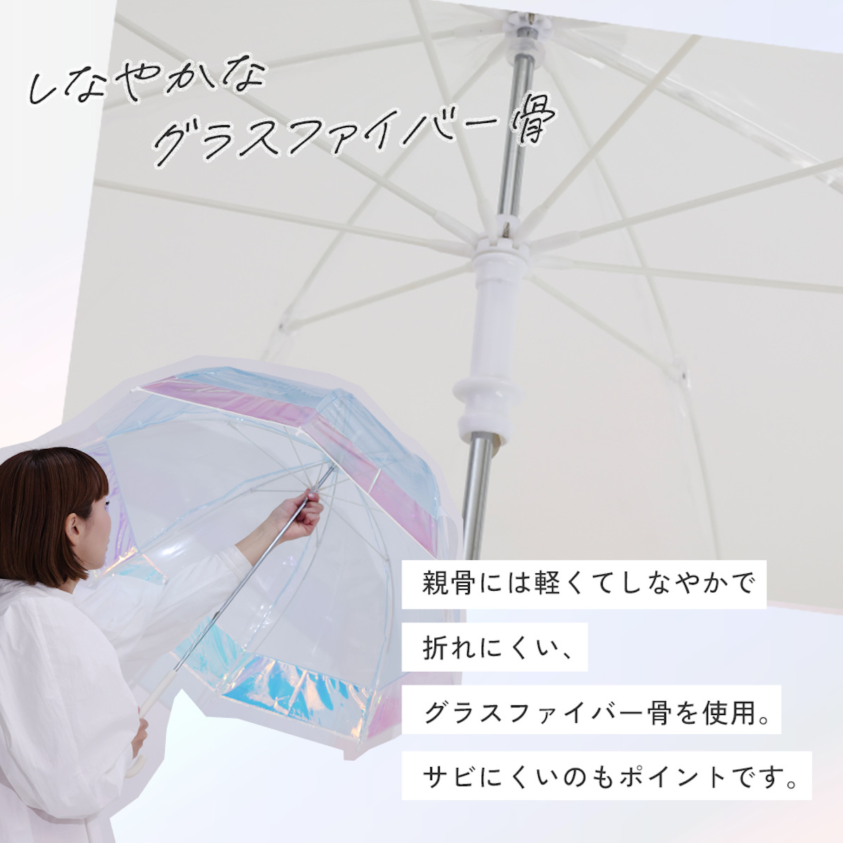 ●光の変化で表情が変わるオーロラのようなビニール傘です。
