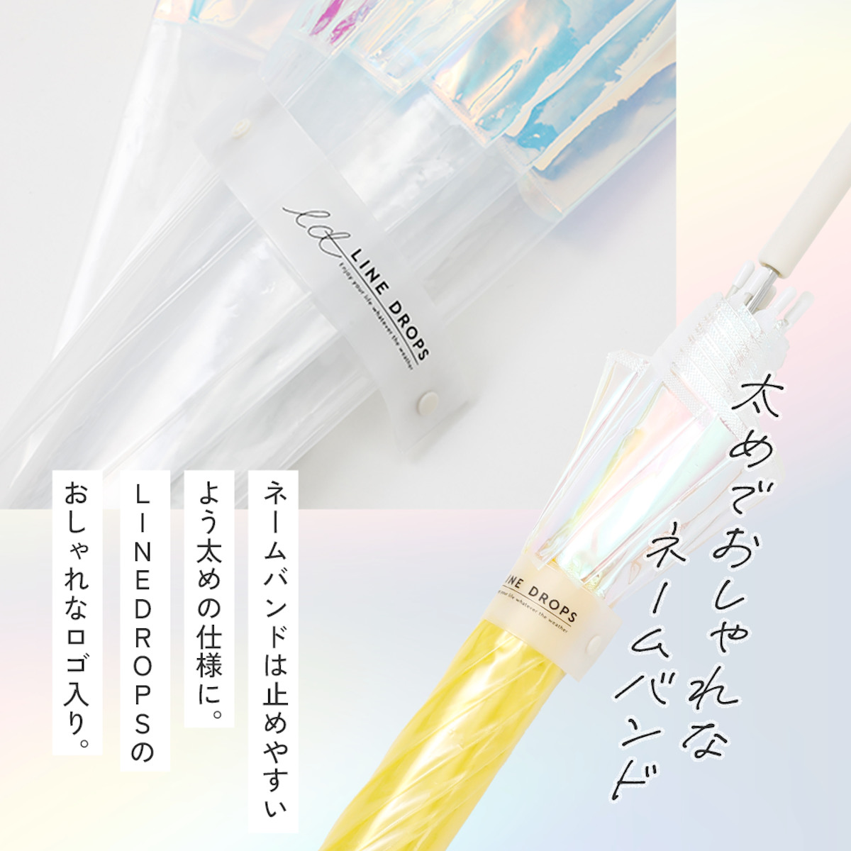 ネームバンドは太めの仕様なので、傘をたたむ際に留めやすいです。