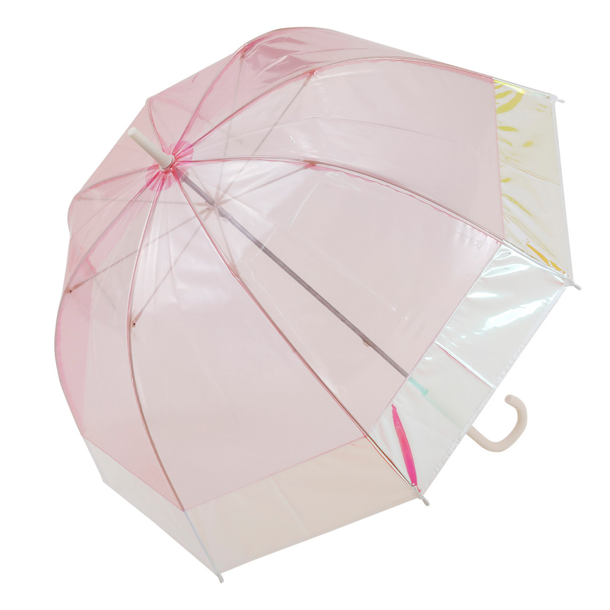 光の変化でオーロラのように輝くビニール傘
