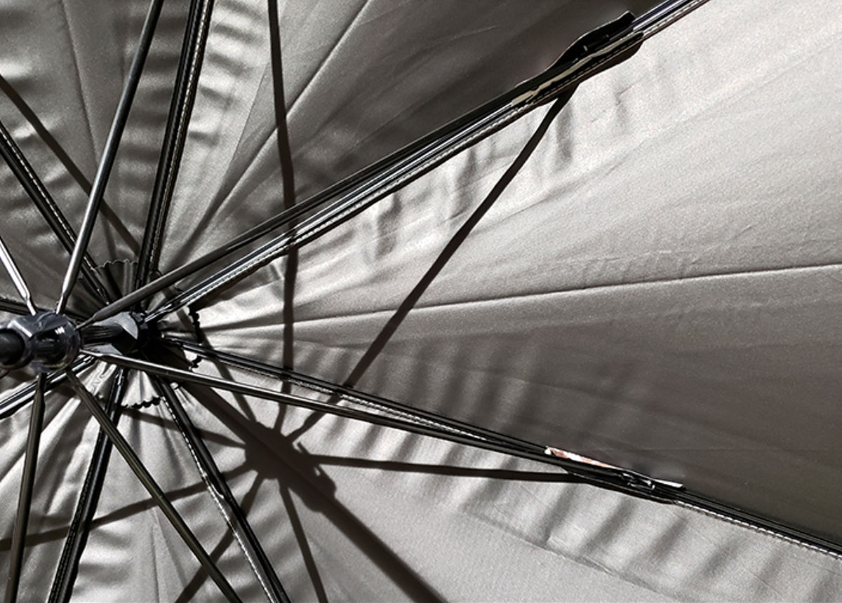生地に撥水加工が施されており、日差しを遮る日傘としても、雨を防ぐ雨傘としても使用可能です。天候に合わせて傘を持ち替える手間が省け、便利にお使いいただけます。